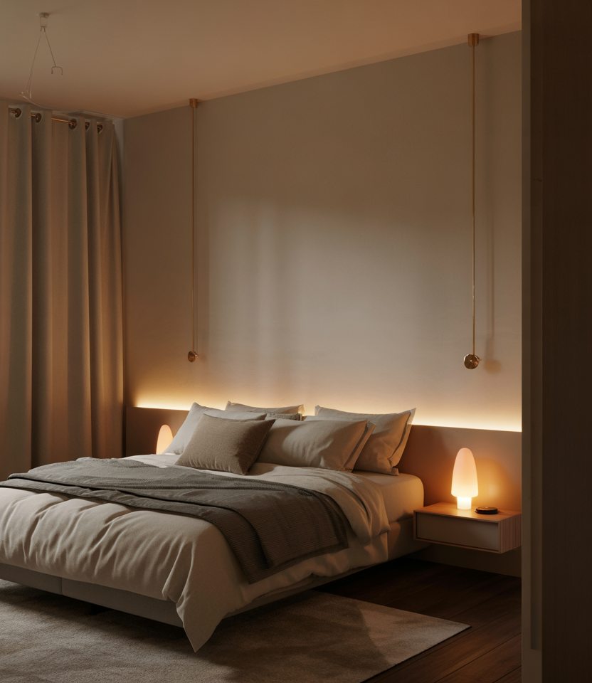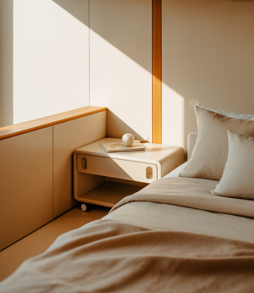Sliding nightstands are a clever way to adapt a tiny footprint, shifting aside when you need more room to move. They pair beautifully with a compact king-size bed alternative, soft cozy layers, or even playful Minecraft-inspired color cues. Add a slim rail above for an apartment-friendly storage boost.