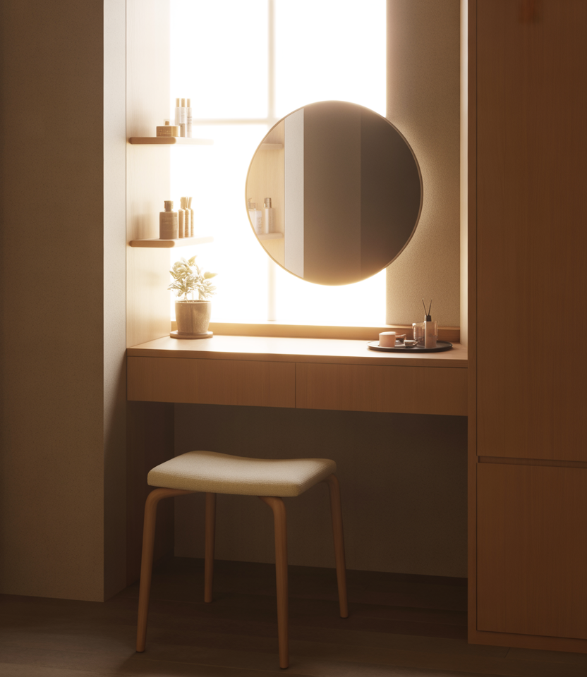 A tiny vanity can fit beautifully into a small bedroom, especially when paired with a wall-mounted mirror and slim stool. Add soft tones, an aesthetic tray, or touches from Bloxburg inspiration to keep the setup clean and sweet. A whisper of pink or cozy aesthetic décor pulls the nook together without crowding the room.