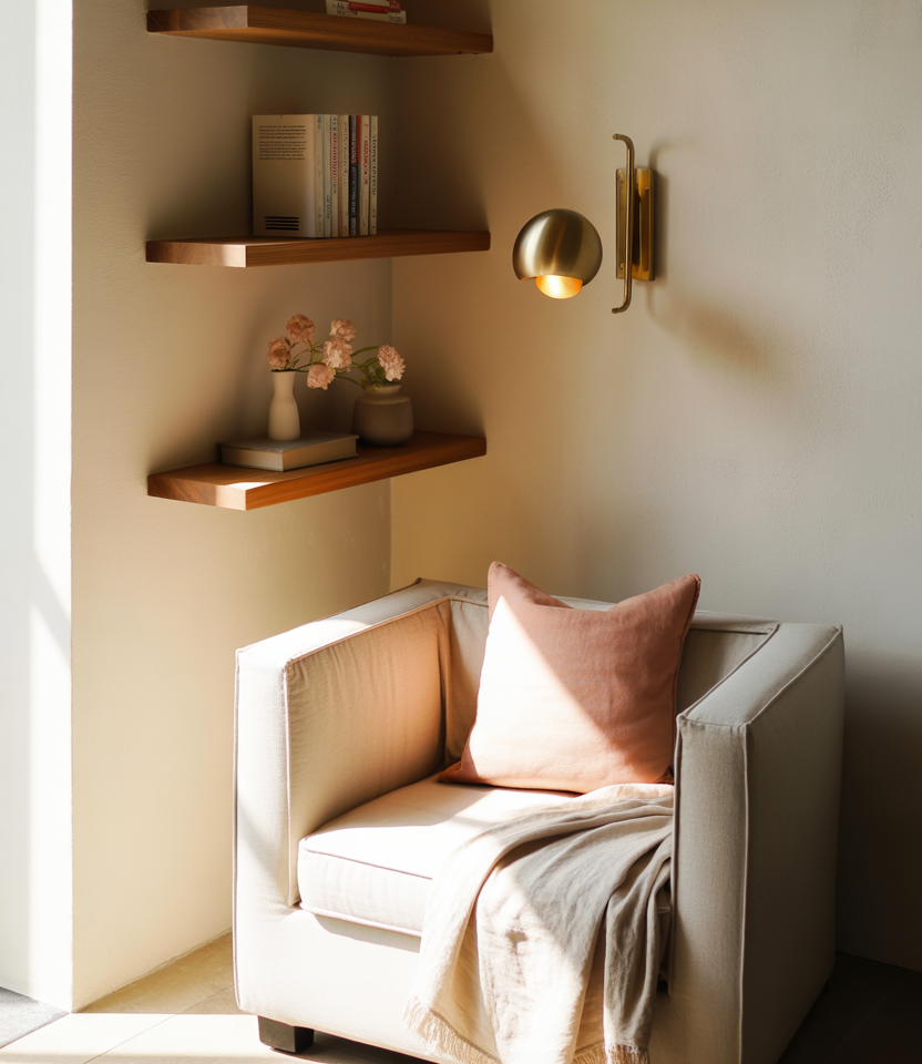 Creating a reading corner within a small bedroom is surprisingly doable. Think about carving out space beside a single bed with layered throws, super soft seating, or a narrow sconce. Add a warm pink accent or a textured pillow for visual charm, keeping the vibe authentically aesthetic.