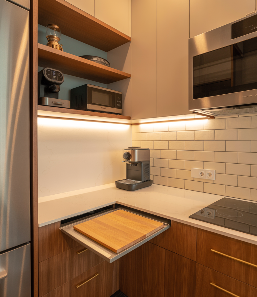 Designing a corner-focused prep station adds extra practicality to cramped kitchens by turning awkward angles into efficient hubs. Older apartments, where walls are immovable, benefit greatly from this design. I once watched a couple in Denver install floating shelves and a compact mixer stand in a previously unused corner—suddenly their workflow doubled. Designers at House & Garden often highlight how corner optimization improves both form and function.