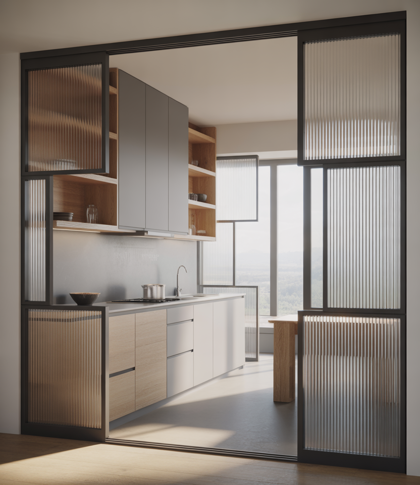 Movable panels can shift the layout instantly, hiding clutter or expanding counter space when needed. This idea thrives in open studios where kitchens merge with living areas. A friend in Portland replaced cabinet doors with frosted sliding panels and loved the newfound flexibility. Architectural Digest frequently showcases homes where sliding surfaces create dynamic transitions in small footprints.