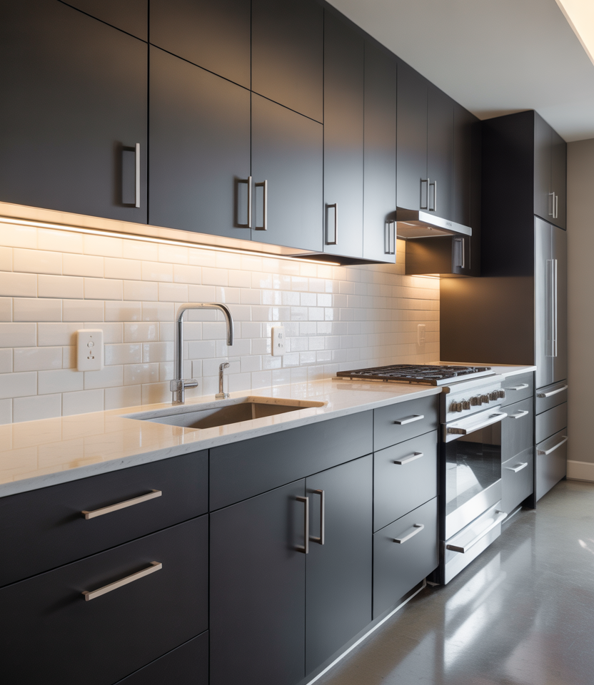 A modern simple aesthetic involves clean lines, a muted palette, and clutter-free surfaces—a style that gives even the smallest kitchen a little visual breathing room. This works especially well in condos or open studios where the kitchen is always in view. I’ve noticed this approach in several Los Angeles remodels where uniform cabinetry dramatically calmed the entire home. Designers like Nate Berkus often lean on simplicity for smaller footprints.