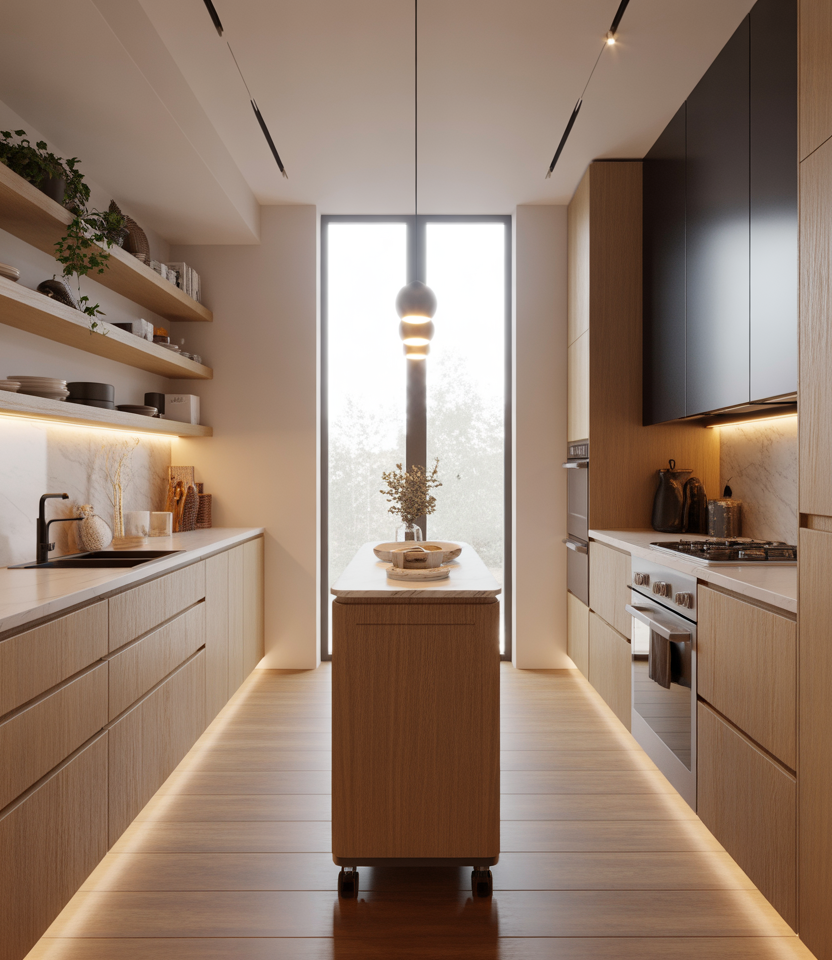 The concept of a super slim island works out well in narrow kitchens where full-depth islands are impossible. This is popular in compact urban spaces and studio apartments where circulation matters as much as storage. A Brooklyn couple I once interviewed turned a 12-inch-deep rolling island into their social hub—proof that minimal surface can still feel generous. Influencers like Faith Roberson at The Kitchn often highlight this trick for small homes.
