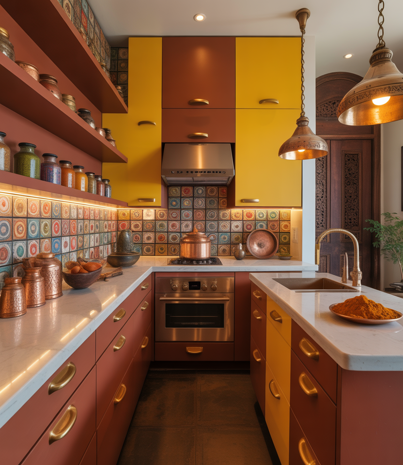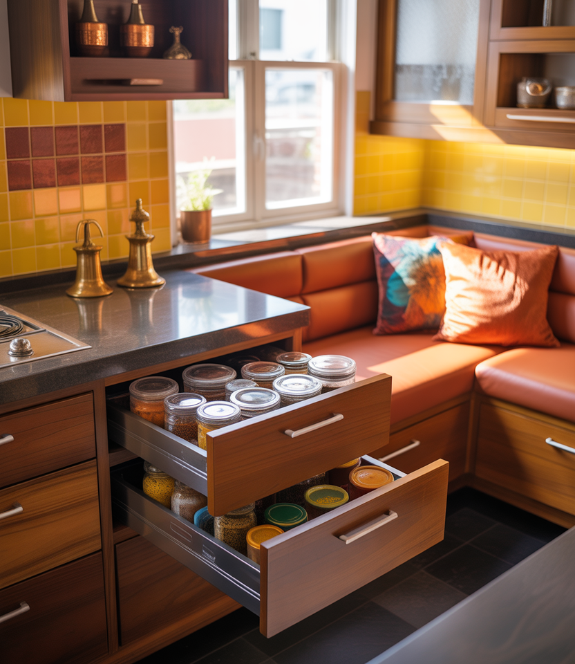 An Indian small-kitchen approach focuses on spice organization, efficient ventilation, and high-output cooking scaled intelligently for tight square footage. I helped a colleague adapt her mother’s Chennai-style setup to a 700-sq-ft New Jersey condo, and the compact masala drawer changed everything. Sites like Architectural Digest India highlight how vibrant colors and smart storage thrive even in limited space.