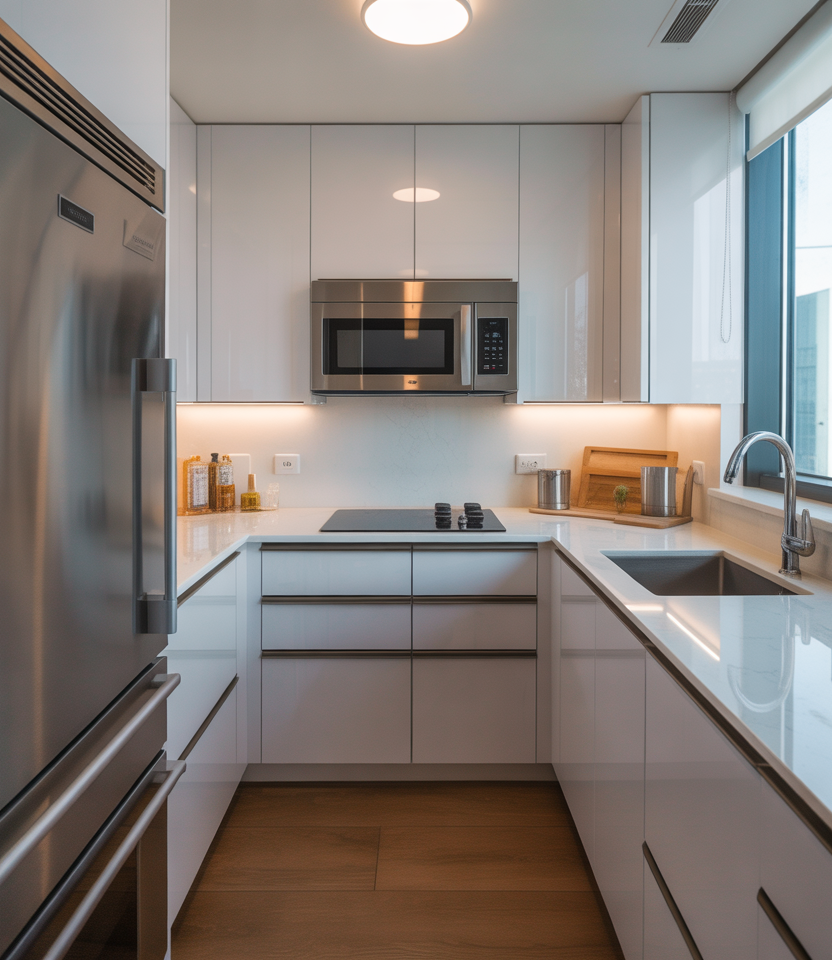 The U-shaped kitchen continues to be one of the most efficient layouts when every square inch matters. This extra compact system wraps storage and prep around you, reducing unnecessary steps while boosting capacity. I once came across a U-shaped renovation in a 450-sq-ft apartment in Chicago, and the owner told me it “doubled” her functional space. Many architects on Dezeen still tout this format as ideal for micro dwellings.