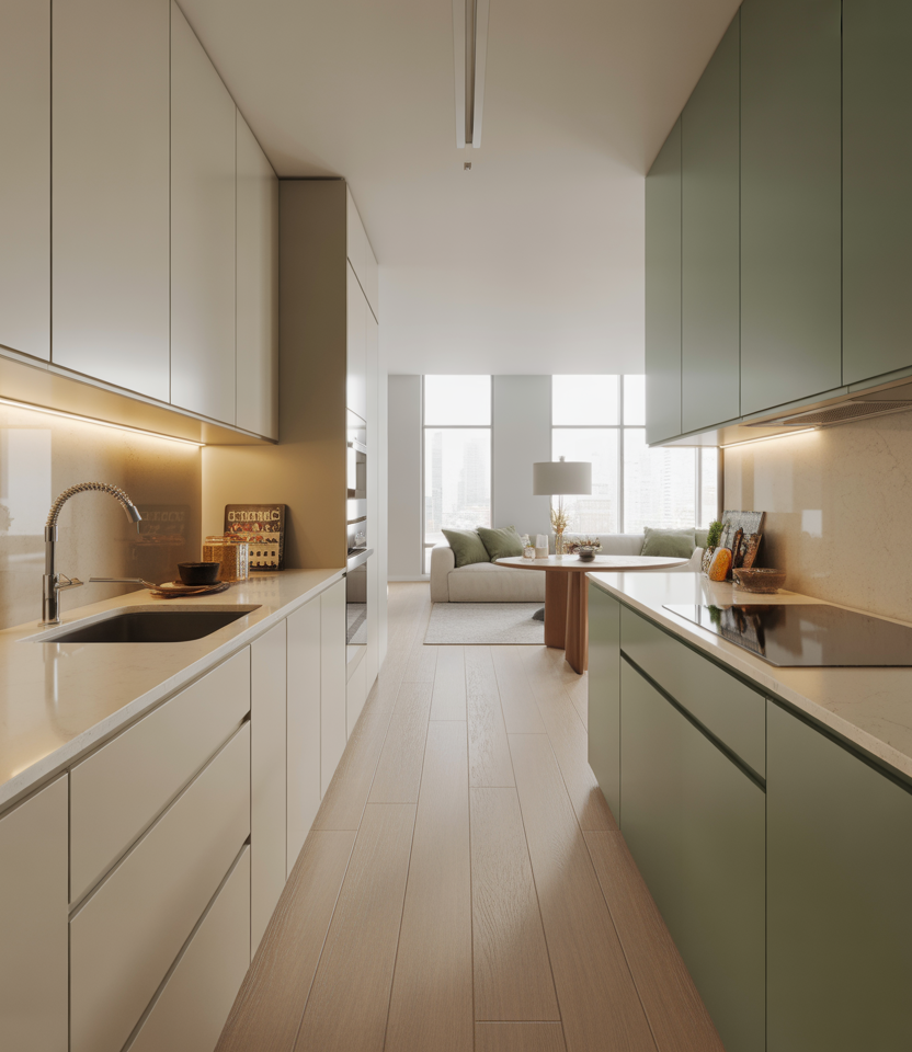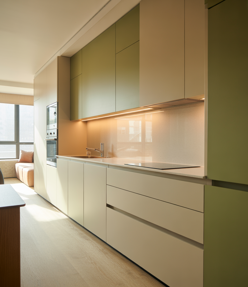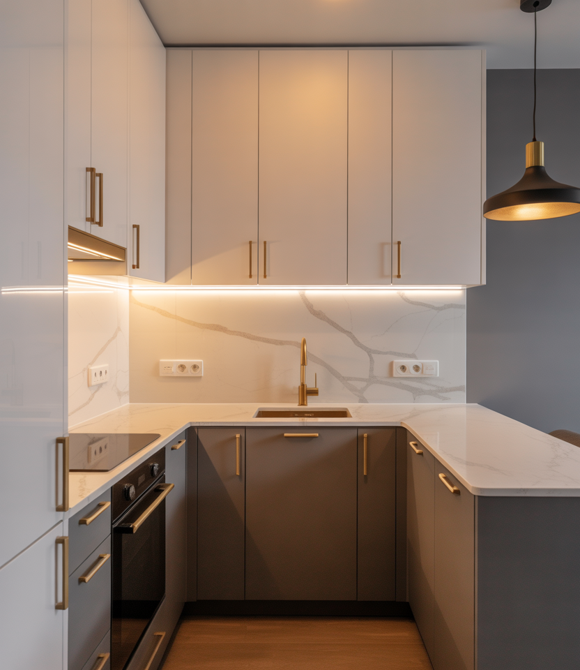 A modern, simple monochrome scheme—charcoal, cream, or soft taupe—creates visual harmony that visually expands the room. A homeowner in Miami shared how shifting to a single-tone palette made her 80-sq-ft kitchen feel twice as wide. Publications like Elle Decor frequently highlight monochromatic designs for their ability to unify and declutter small interiors.
