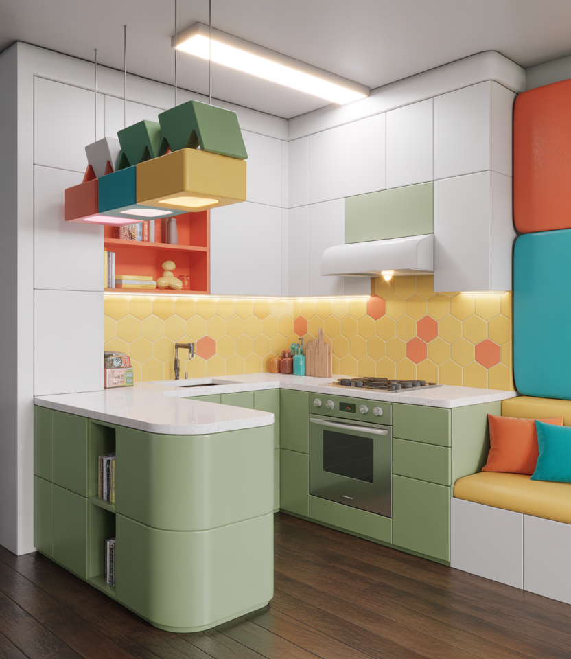 A Bloxburg-inspired kitchen takes from the modular, playful layout options in the popular game—sharp colors, customizable configurations, and compact, functional blocks. Surprisingly, several young homeowners I visited in Austin have used the game’s grids for design references. Its imaginative, shaped organization brings joy while keeping the space efficient, especially when renovating on a tight budget.