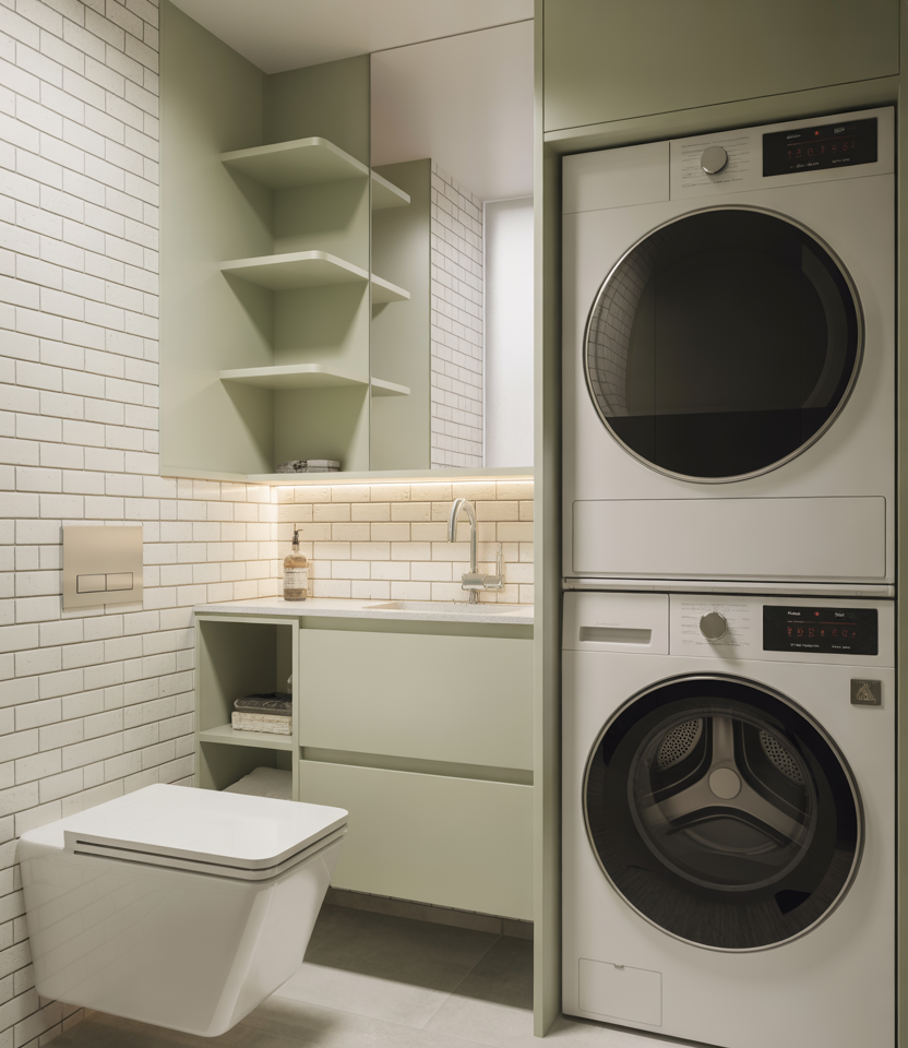 In urban apartments, bathroom and laundry combinations are increasingly common. Integrating appliances within a single wet zone saves space while optimizing the layout. Designers at Domino Magazine often highlight these setups for their efficiency, especially when paired with calm paint colors and simple millwork.
