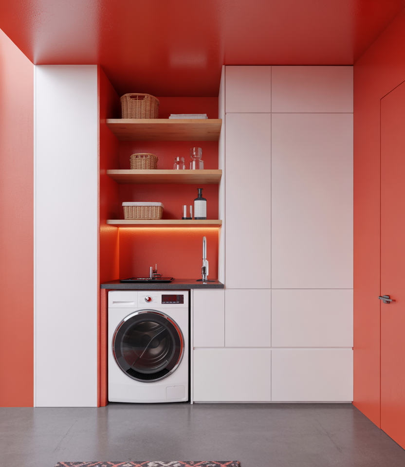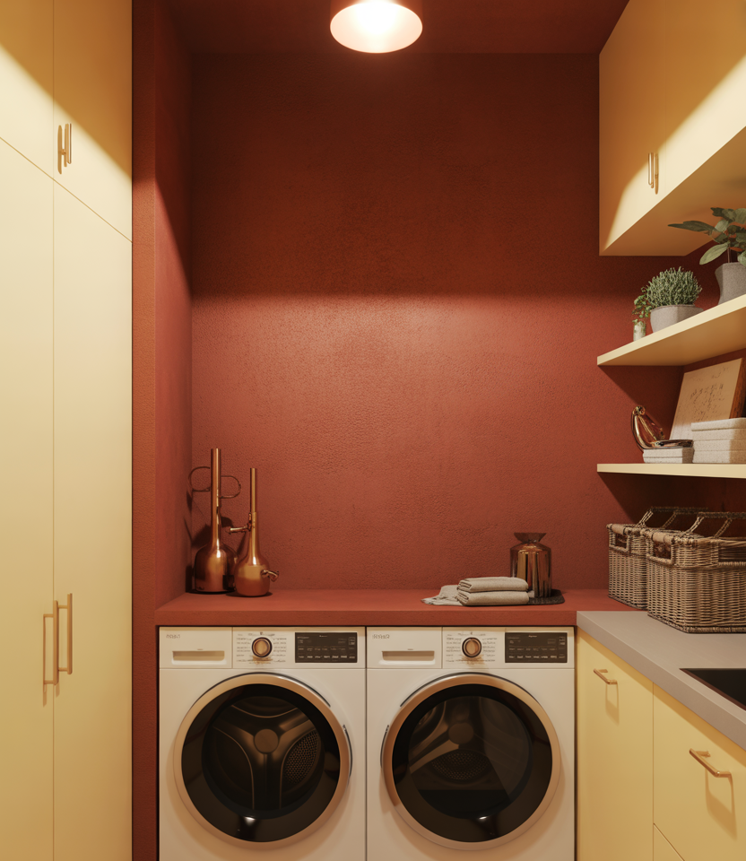 Introducing bold paint colors on one wall transforms a tiny laundry into a charming design feature. This makeover tactic adds personality without overwhelming a compact layout. Many decorators recommend rich greens or soft terracottas to brighten the mood and disguise limited dimensions.