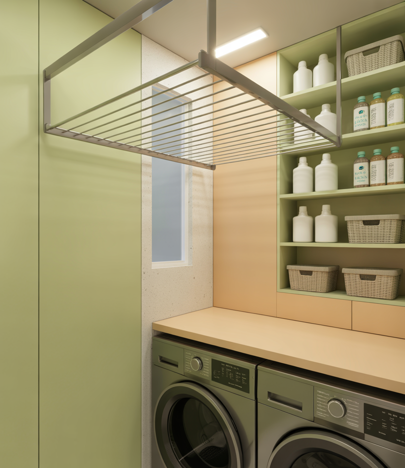 Ceiling-mounted drying systems free valuable space while supporting smart organization. This design lifts damp clothing overhead, ideal for rooms with limited square footage or narrow footprints. Inspired by European solutions, this feature modernizes older American homes without expanding walls.