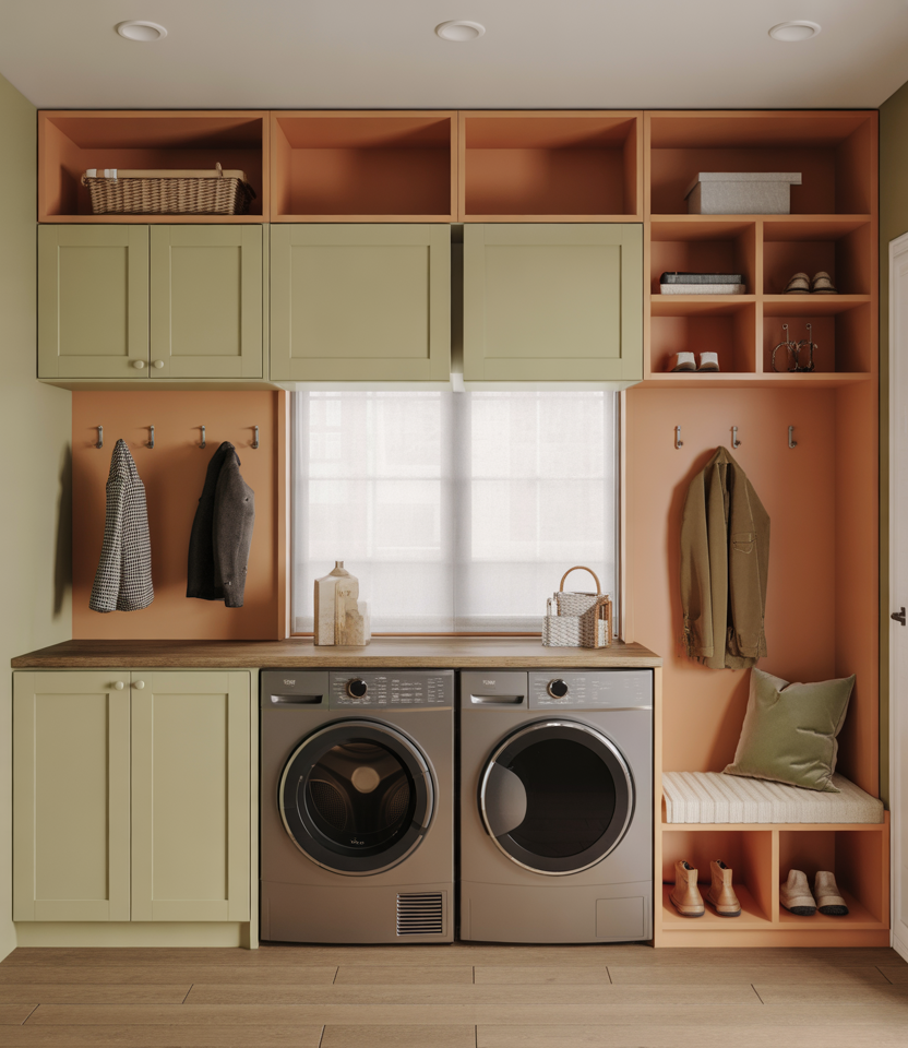 A combined laundry and mudroom offers smart design and storage options, especially in homes where square footage is limited. Integrating hooks, benches, and cubbies with a compact washer setup promotes seamless organization. This hybrid room works well for families who need drop-zone convenience paired with functional washing space.