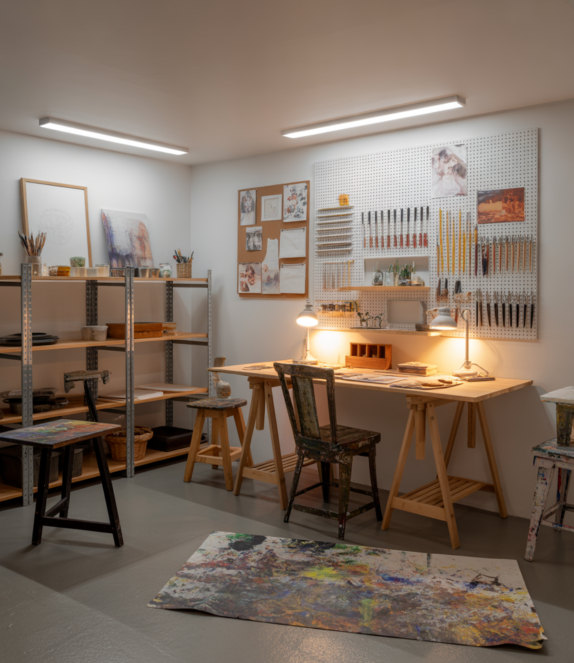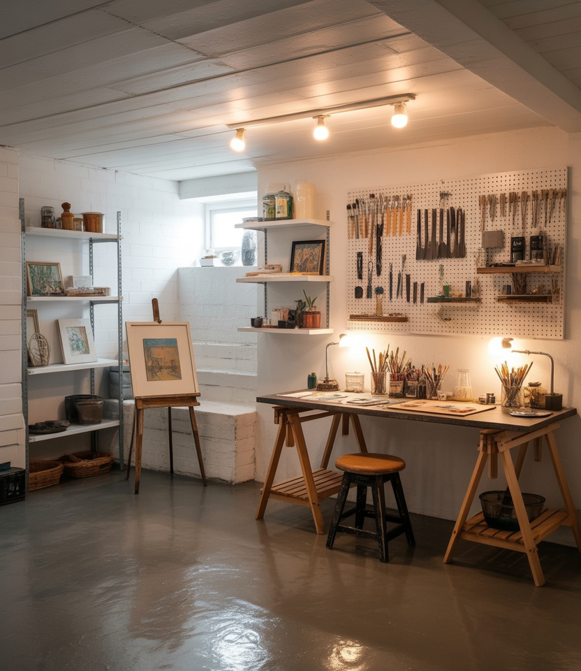 For the creative soul, a basement art studio can be the ultimate retreat. Use ideas on a budget like pegboard walls for tools, reclaimed tables, and track lighting for brightness. Neutral color palettes keep the space calm while allowing art to shine. Whether you paint, craft, or sculpt, this wine cellar is one of the most inspiring DIY projects you can tackle in 2026.
