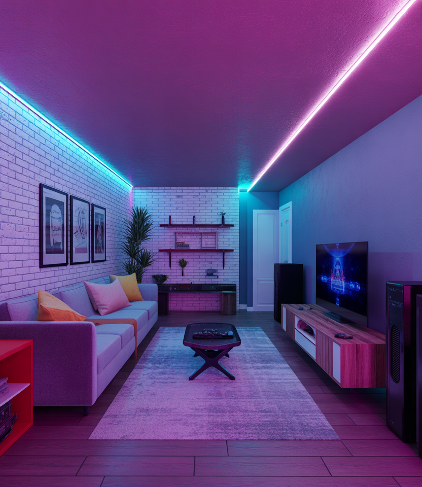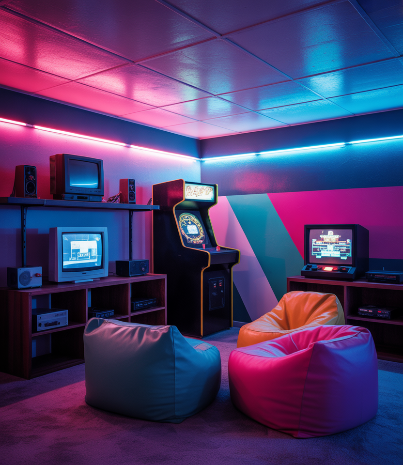 Nostalgia meets comfort in this 2026 trend. A DIY retro gaming room with neon signs, colorful walls, and vintage consoles adds a playful spirit to your basic basement. It’s a cheap yet charming idea that works even with a low ceiling—just use LED strips for mood lighting and simple seating. Great for teens, adults, or anyone young at heart.