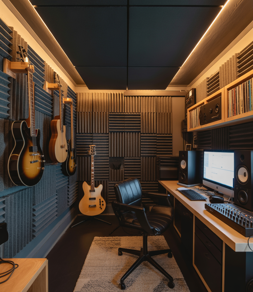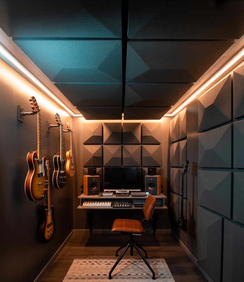 For musicians, a soundproof DIY studio is a dream project. Use acoustic panels, black ceiling paint, and layered storage solutions for instruments. Even in Michigan, where winter inspires creativity, this idea on a budget brings professional vibes home. Add a mini fridge and soft lighting to make recording sessions comfortable and productive.