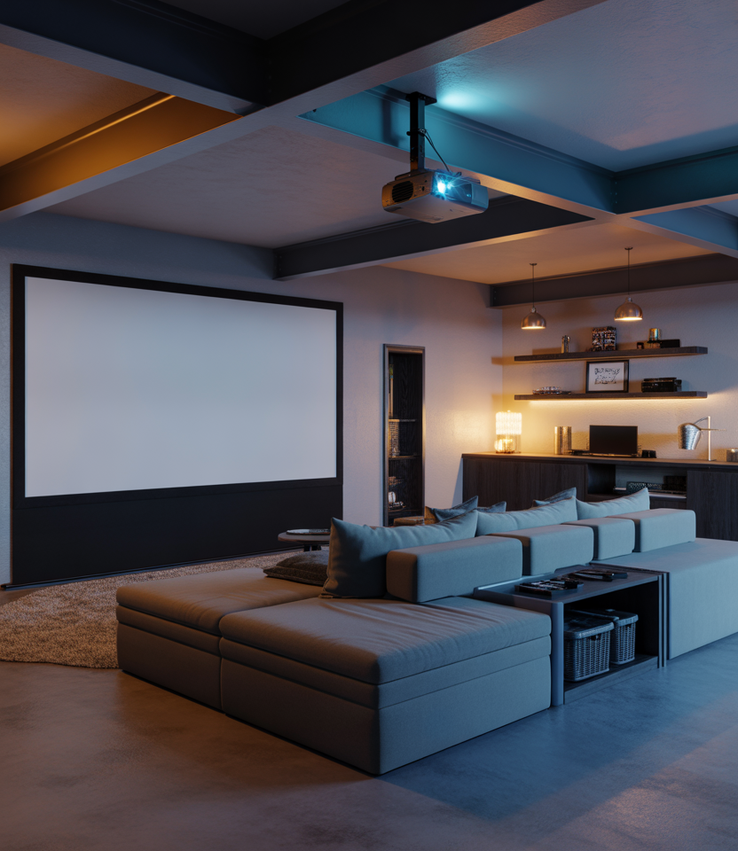 Turning an unused basement into a DIY entertainment area doesn’t require a Hollywood budget. Think projector screens, modular seating, and cheap soundproof panels. This idea suits a split-level home or raised ranch, making movie nights and game marathons an at-home luxury. The best part? You can build most features yourself with inexpensive materials from your local hardware store.