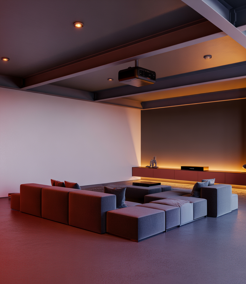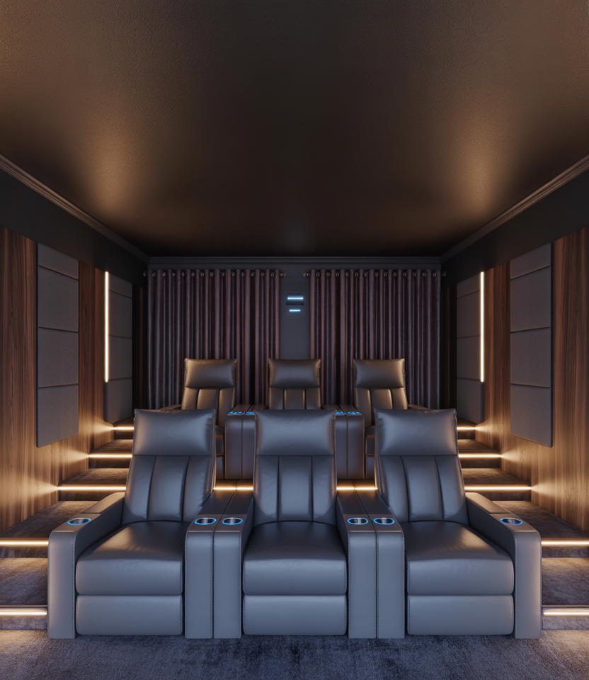 A black ceiling and layered lighting can make your DIY basement theater feel cinematic without breaking a budget. Add plush recliners, soundproof curtains, and inexpensive wall panels for a professional touch. This setup is ideal for split-level or raised ranch homes where acoustics and ambiance matter. Grab popcorn—your movie nights just leveled up!
