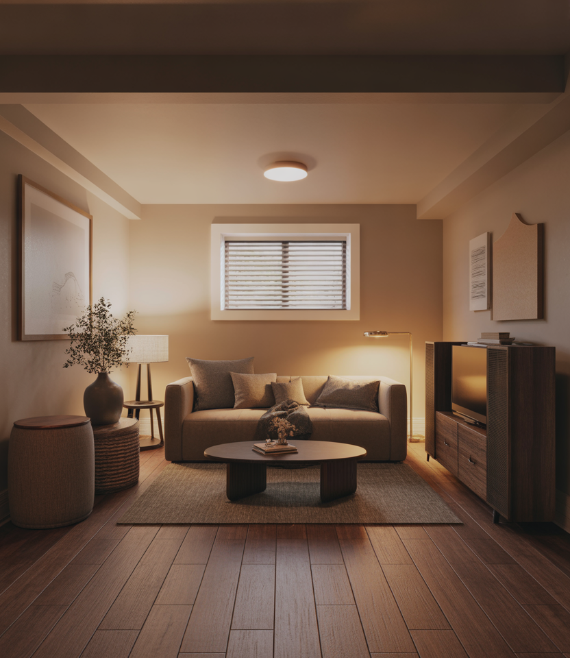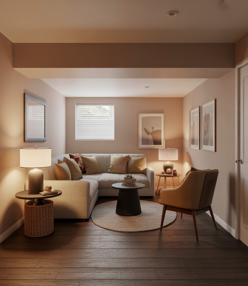 When your basement has a low ceiling, focus on horizontal design. Soft textures, neutral color palettes, and low-profile furniture options create a relaxed feel. Use clever storage solutions to keep the space open and airy. Even a cheap, basic basement can feel like a boutique retreat with the right lighting and fabrics.