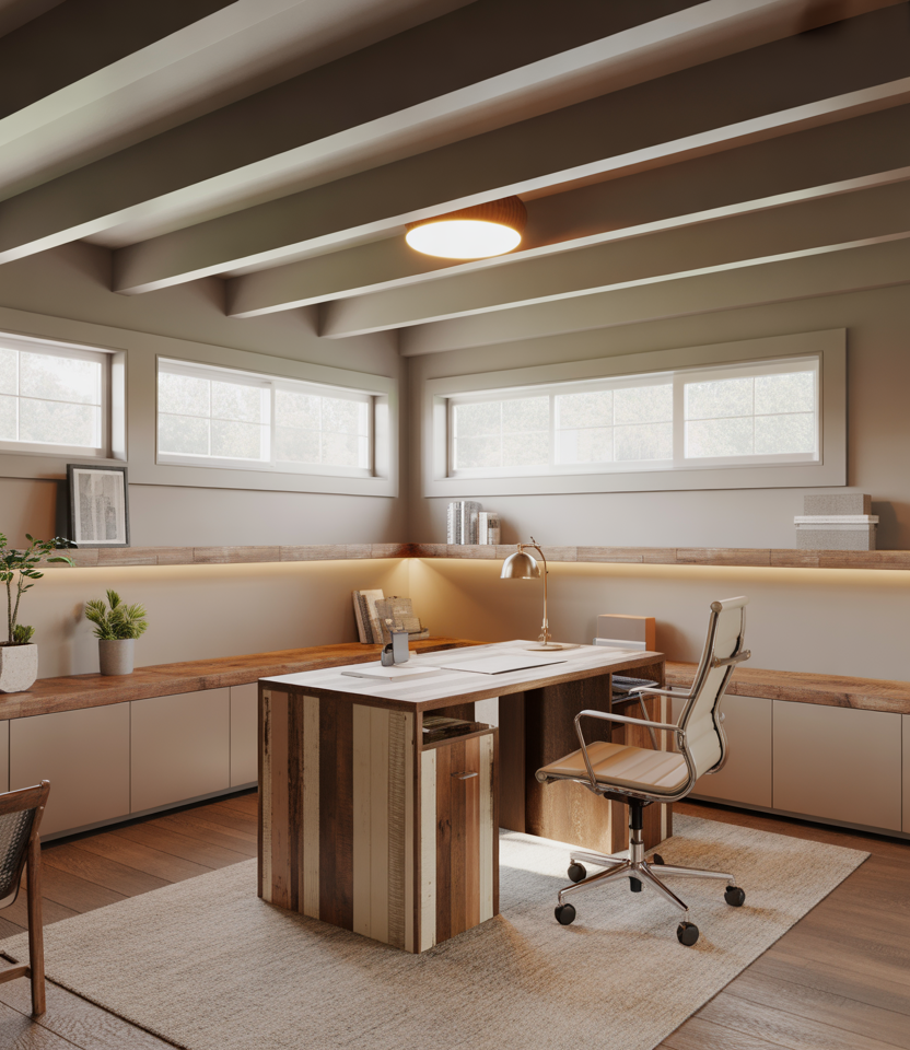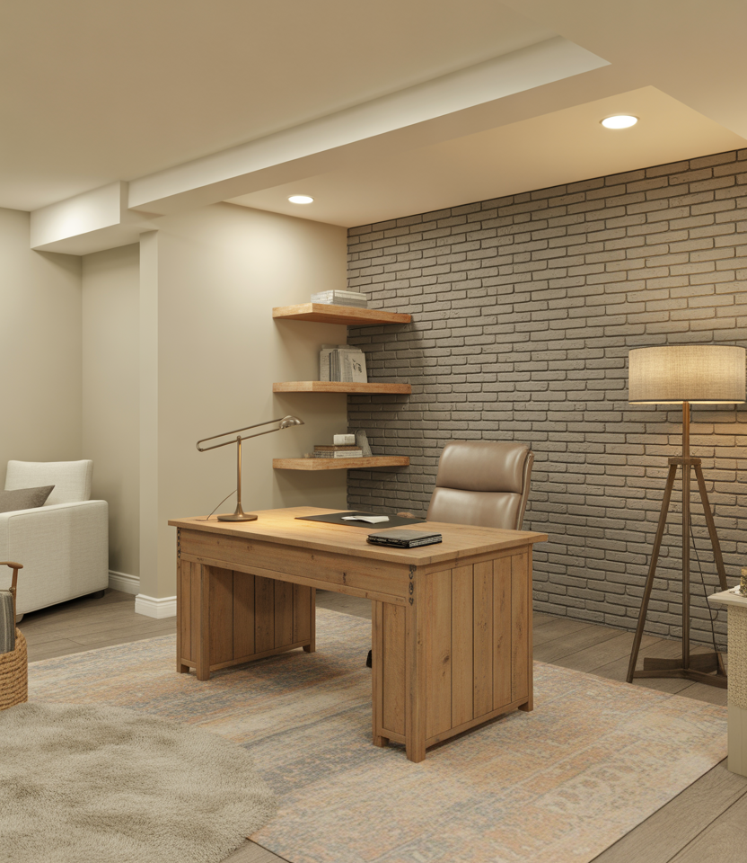For those working remotely, a basement office in a raised ranch home can be both stylish and practical. Neutral color palettes, layered lighting, and ergonomic furniture transform the space into a productivity hub. Add personal touches—framed art or a soft rug—to make it less corporate. A DIY desk or reclaimed wood shelving keeps it on a budget without losing charm.