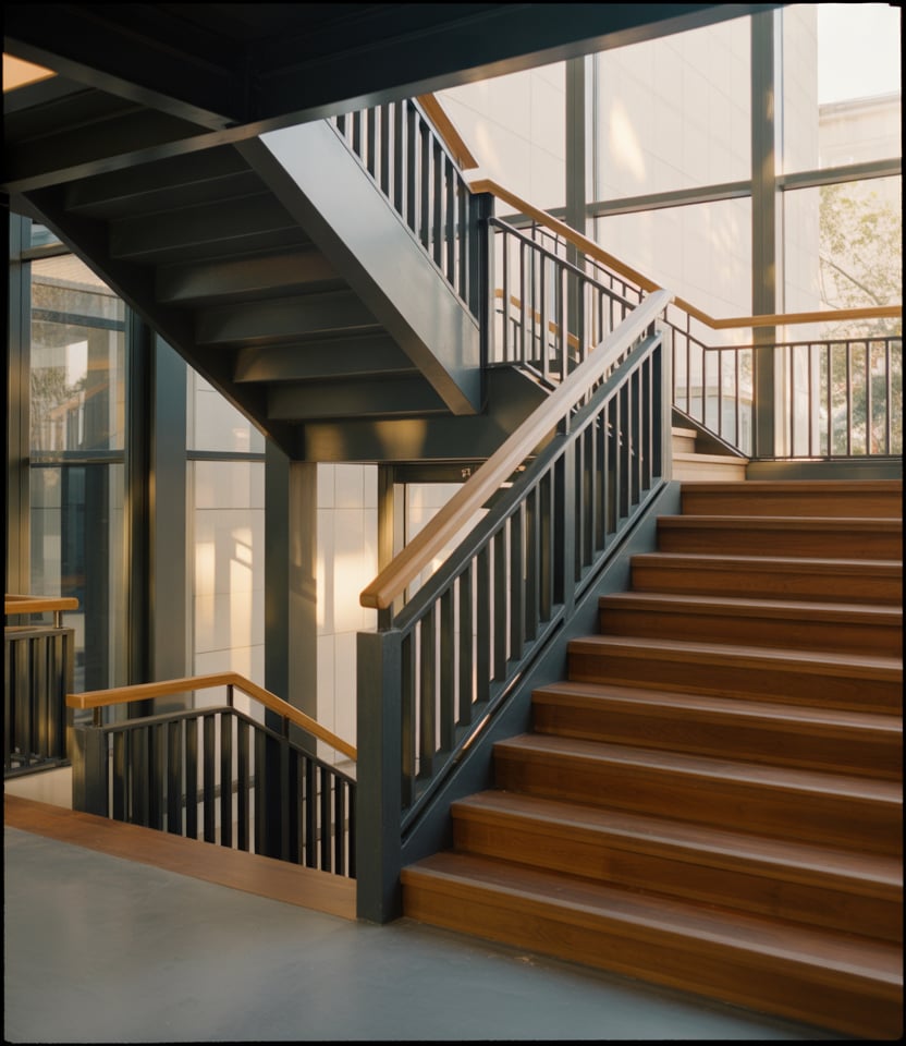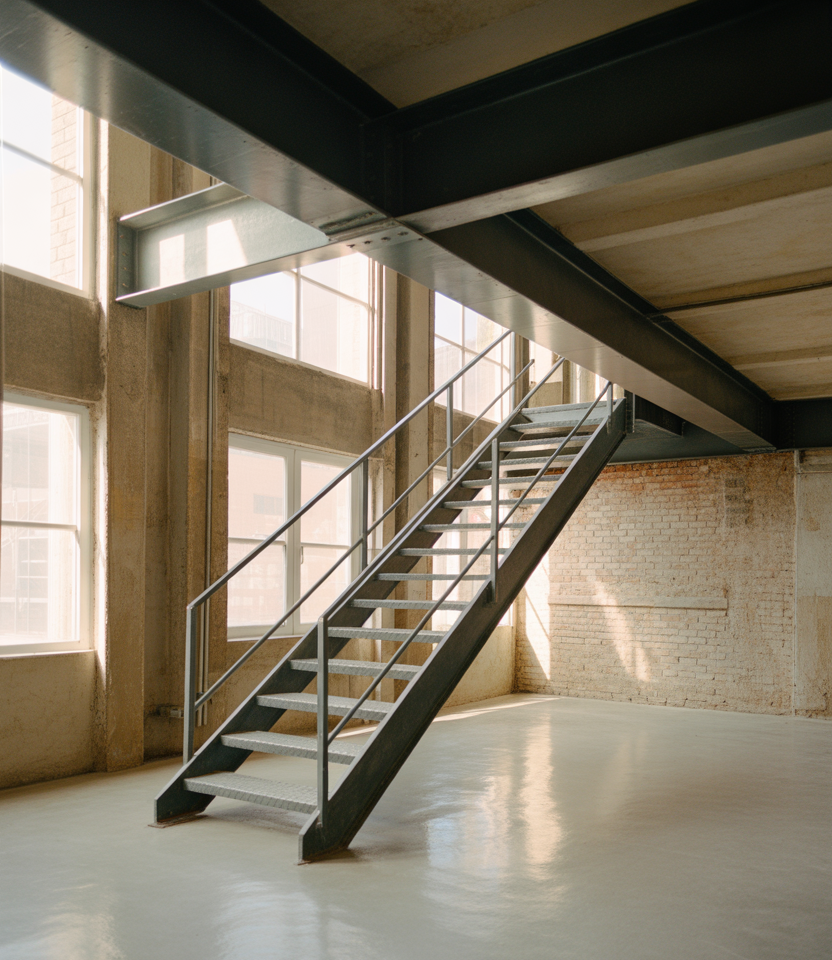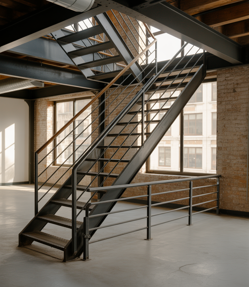 In urban loft spaces, stair railings often lean industrial. Exposed metal, simple geometry, and honest materials suit converted warehouses and city homes. These railings feel intentional rather than decorative, aligning with modern minimalist values.