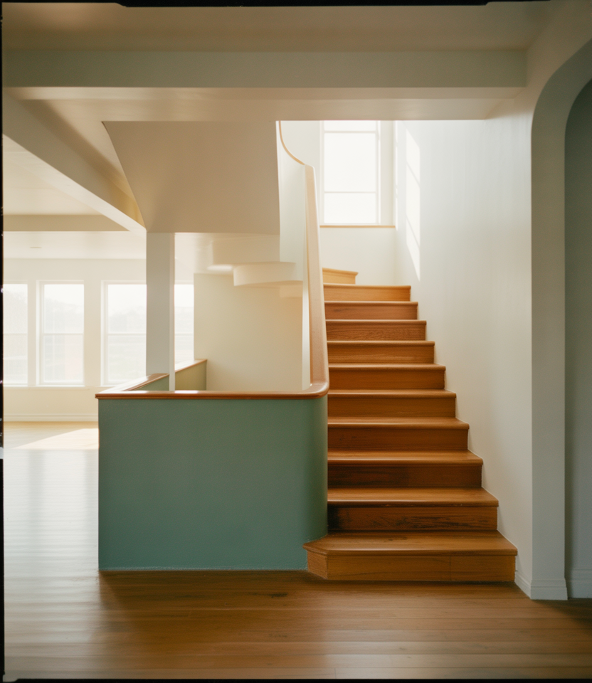Using half walls as stair railings opens the door to color. Soft blues, warm grays, or muted greens can define the staircase without overwhelming the space. This approach adds personality to an otherwise simple wall structure.