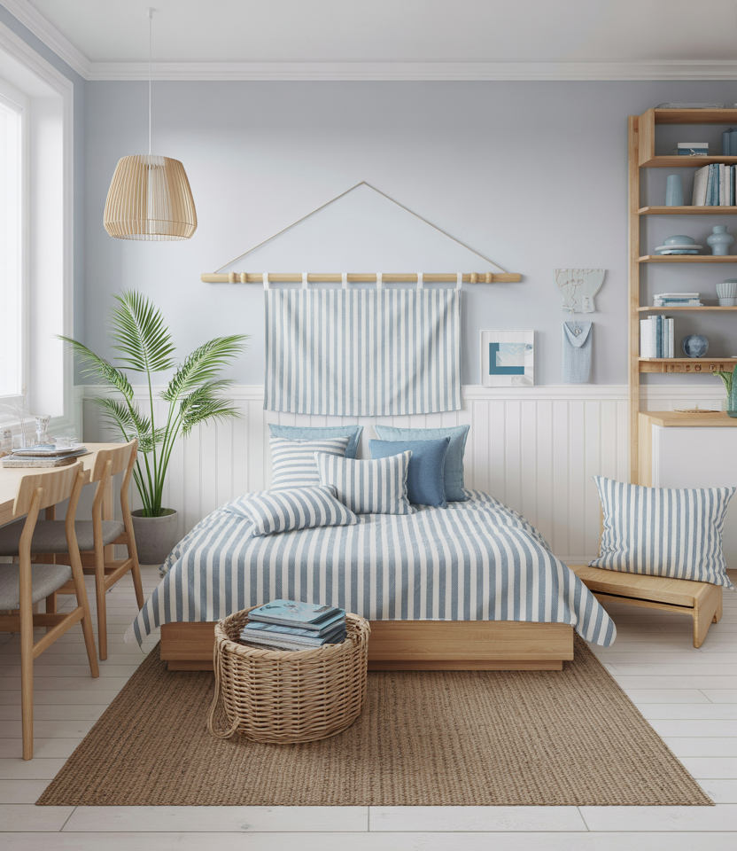 Pairing Ikea staples with soft coastal touches creates a breezy small-space vibe. Light woods, striped textiles, and sandy neutrals make a studio feel open and relaxed. This blend is perfect for renters who want a refreshing design without high costs. It’s flexible, affordable, and easy to update seasonally—a favorite among young creatives.