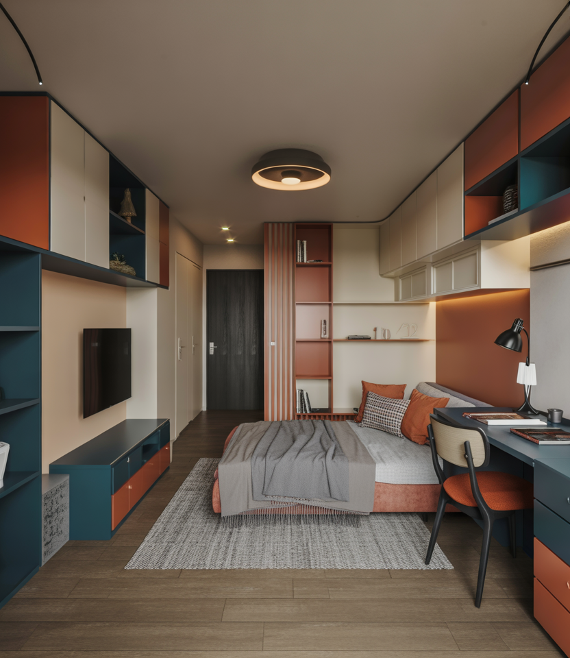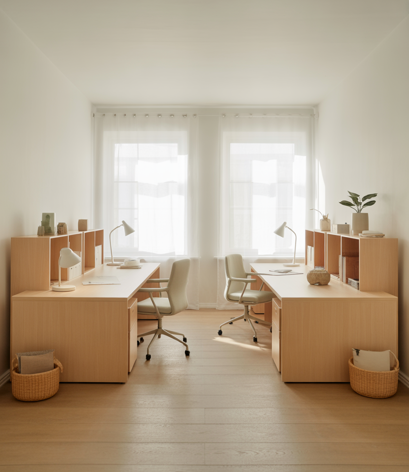 A Scandinavian style works surprisingly well for two people living in the same studio because of its emphasis on harmony and simplicity. Neutral palettes and minimalist furniture help reduce visual noise, keeping shared living peaceful. It’s ideal for couples or roommates who value clarity, comfort, and an airy mental atmosphere in a compact home.