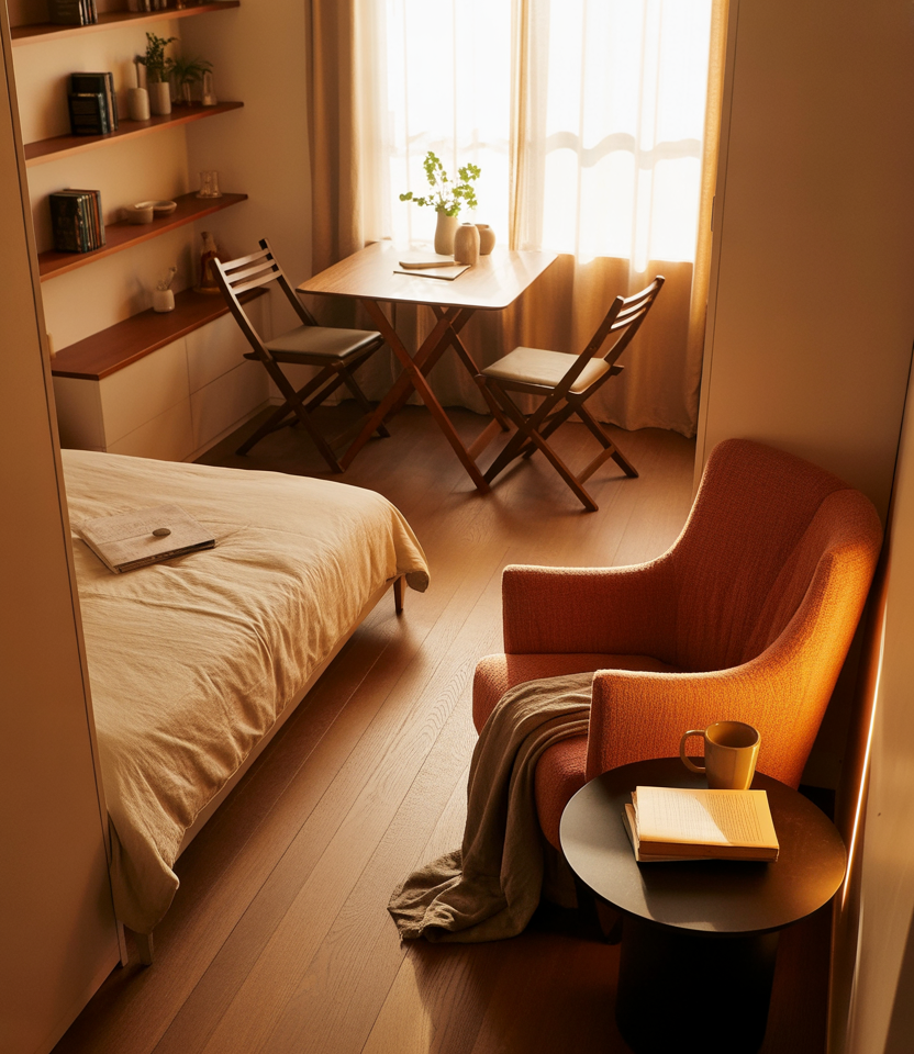 Foldaway pieces help reshape a layout. It’s a favorite trick among designers who prioritize adaptable living for changing weekly routines.