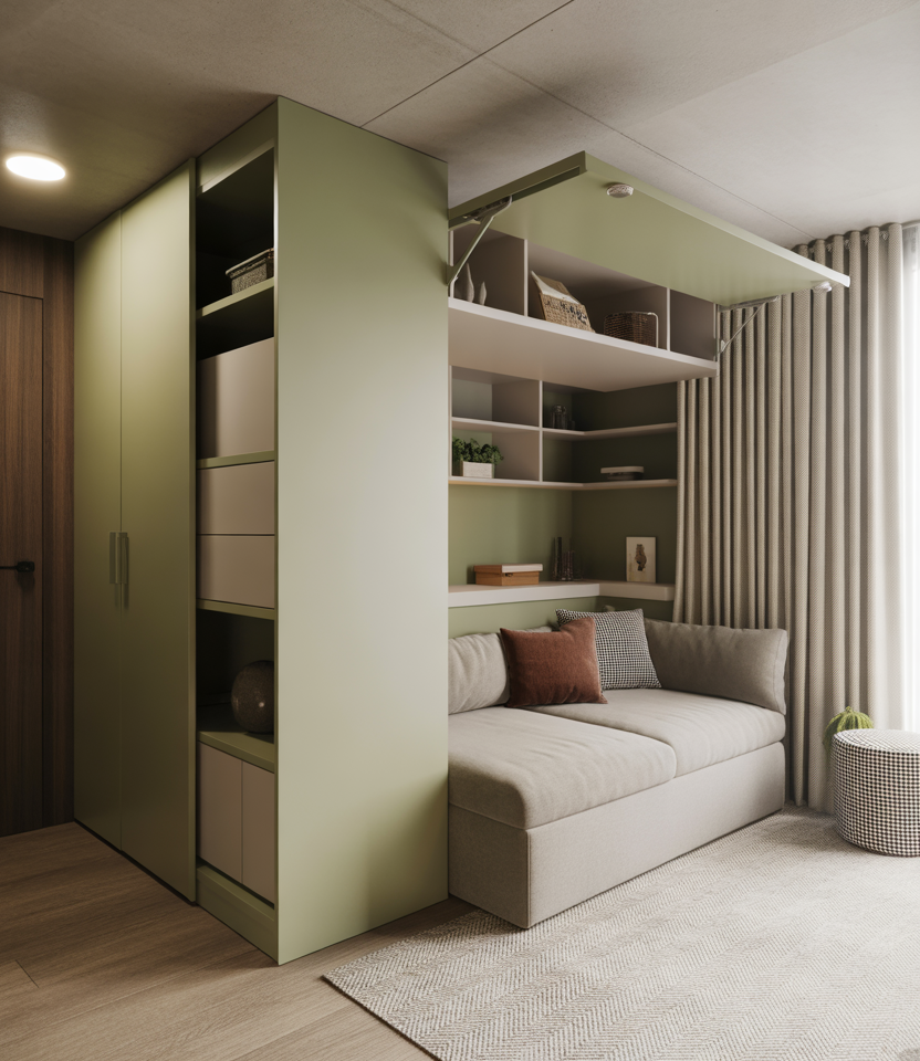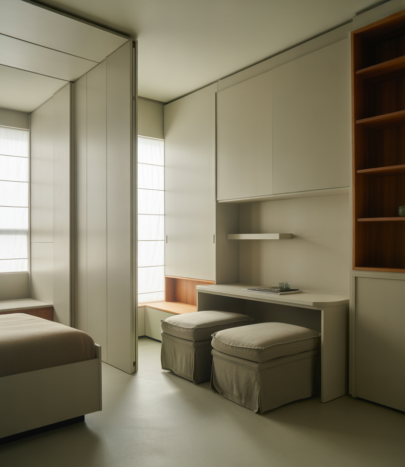 Micro apartments are becoming more common in urban hubs, and designers argue that their success lies in storage that moves with you. Built-ins, ottomans with lids, and sliding cabinetry turn limited space into a functional haven. This idea fits anyone who wants order and calm without taking on a full renovation.