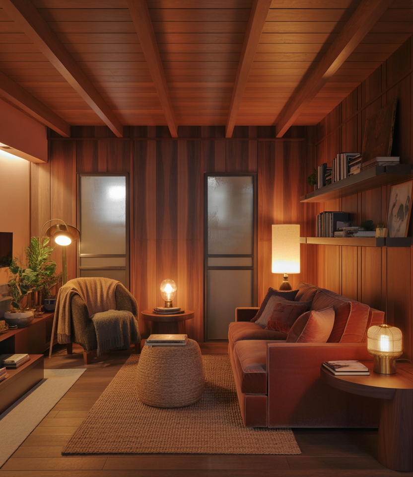 Some designers now mimic that comforting basement vibe—warm wood, low lighting, soft textiles—but adapt it for bright studios. The goal is grounding comfort without the gloom, ideal for people who crave nest-like spaces. This style works especially well in colder climates where warmth matters.