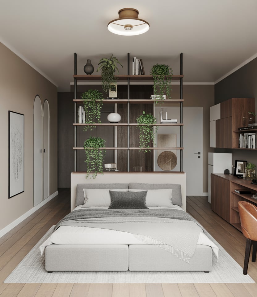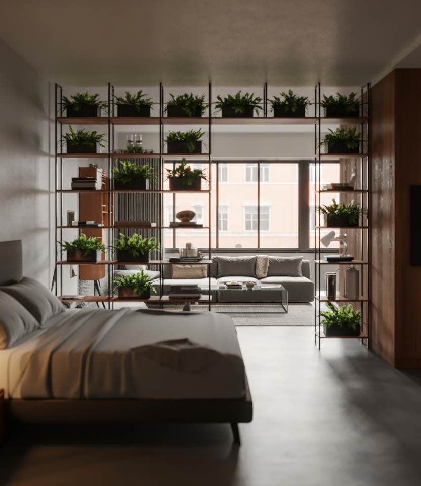A divider helps separate living zones without closing off an open layout. Think fabric screens, slim shelving, or even tall plants. Apartment Therapy editors often mention that dividers can double as décor and functionality, making them perfect for renters sharing a space with two people.