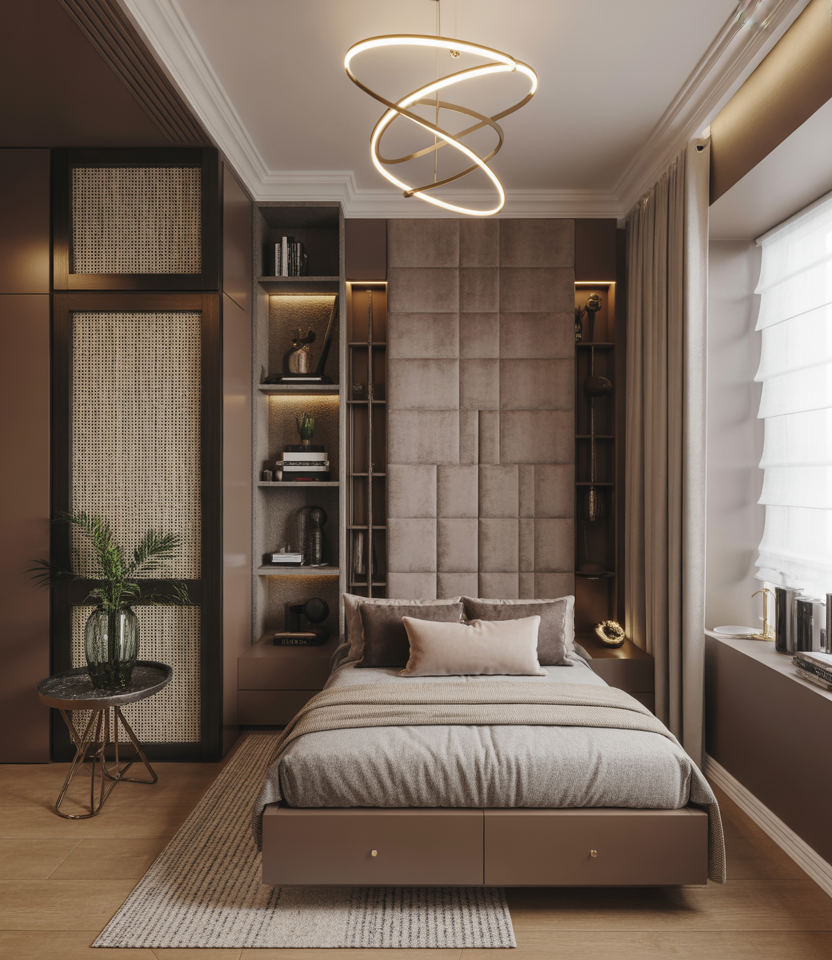 Adding a hint of luxury—velvet pillows, metallic accents, or sculptural lighting—elevates a studio from simple to chic. Even in a tiny cozy home, upscale textures bring warmth and elegance without overwhelming the space. Ideal for anyone seeking boutique-hotel vibes.