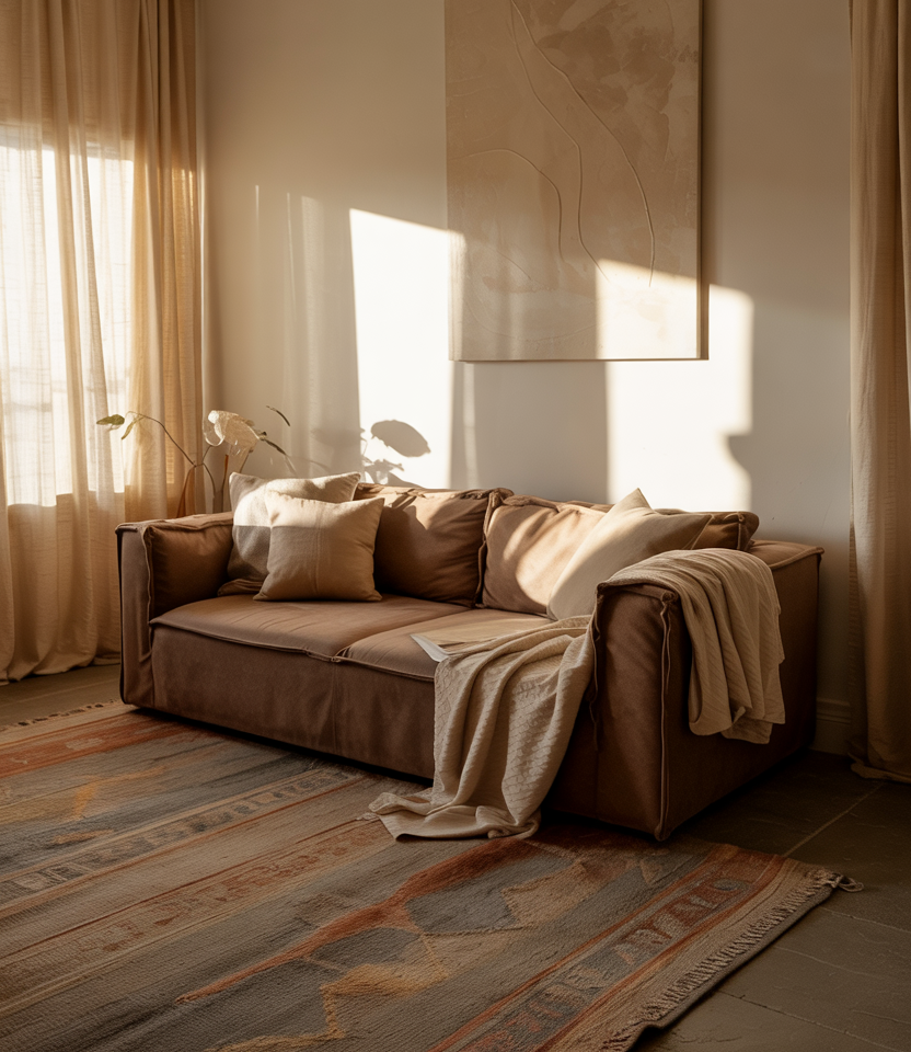 A mocha sofa is a smart choice for renters because it hides wear while staying stylish. The shade pairs with nearly anything, from muted woods to city-friendly neutrals. Adding touches suited for small apartments or cozy layouts keeps the palette feeling intentional, especially when layered with mocha accents.