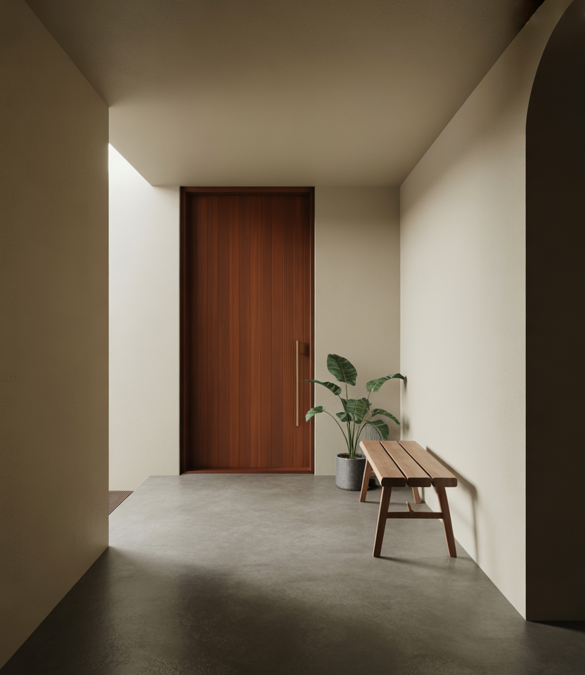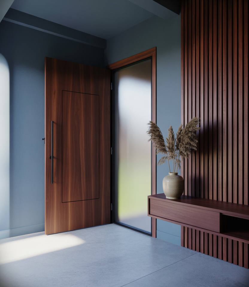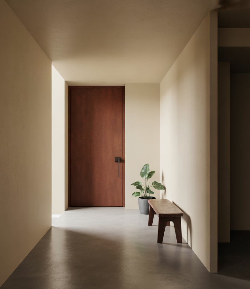 Brown is being thoughtfully reintroduced as a front door color in 2026, especially on a brown house or home with mixed materials. Today’s browns lean earthy rather than heavy, pairing beautifully with steel, glass, and clean architectural lines. The result feels grounded, modern, and quietly confident.