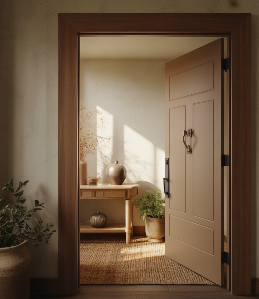 Very subtle lavender undertones are showing up in neutral doors, offering a fresh twist on familiar palettes. As a front door color for 2026, it pairs surprisingly well with gray siding and modern trims. The effect is soft, artistic, and quietly distinctive.