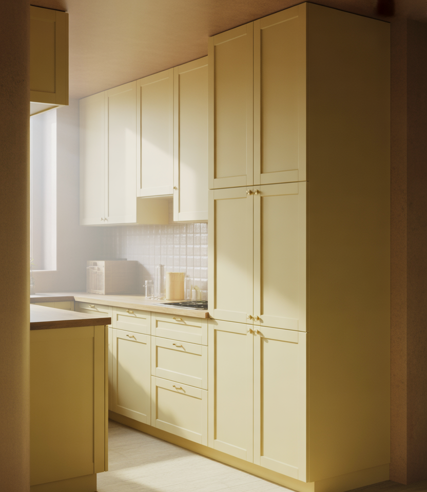2026 soft white cabinet Small-space kitchens are being rethought completely, especially when painted lightly with warmer undertones. These hues are gentle and reflect light, making calm and structured layouts. Paired with simple hardware, white cabinetry keeps visual noise to a minimum while still being intentional.
