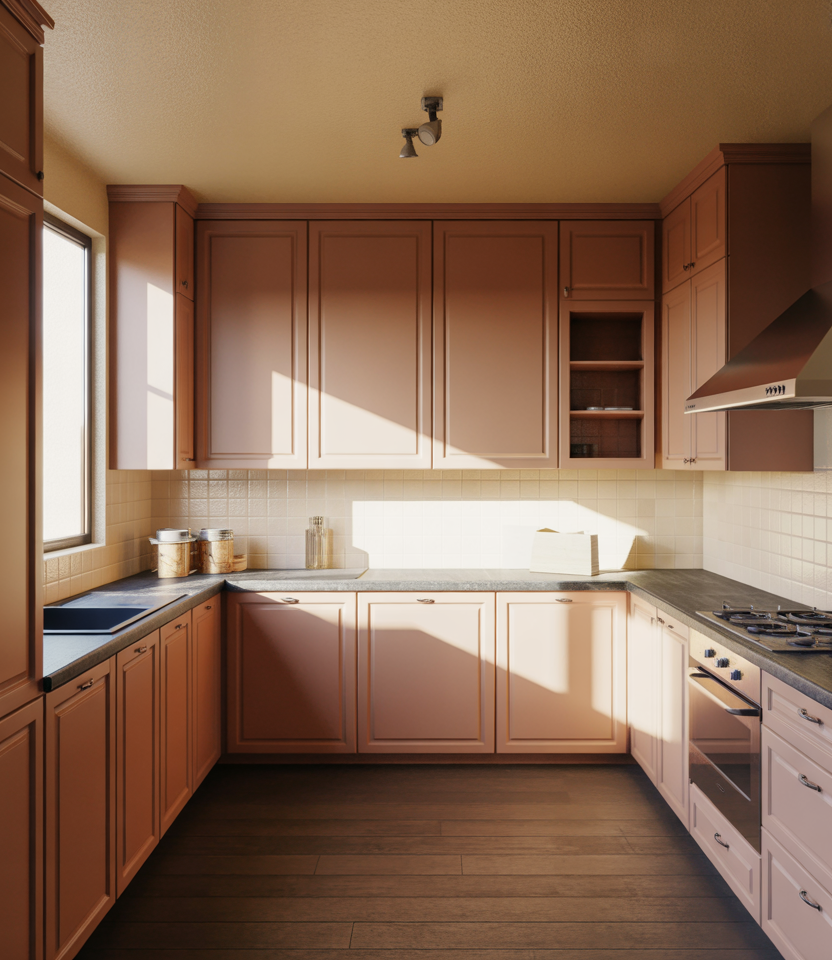 The Tone brown and white cabinet combo is returning with cleaner lines and better balance. In 2026, brown tones are softer and often paired with a dark brown floor to create cohesion rather than contrast overload.