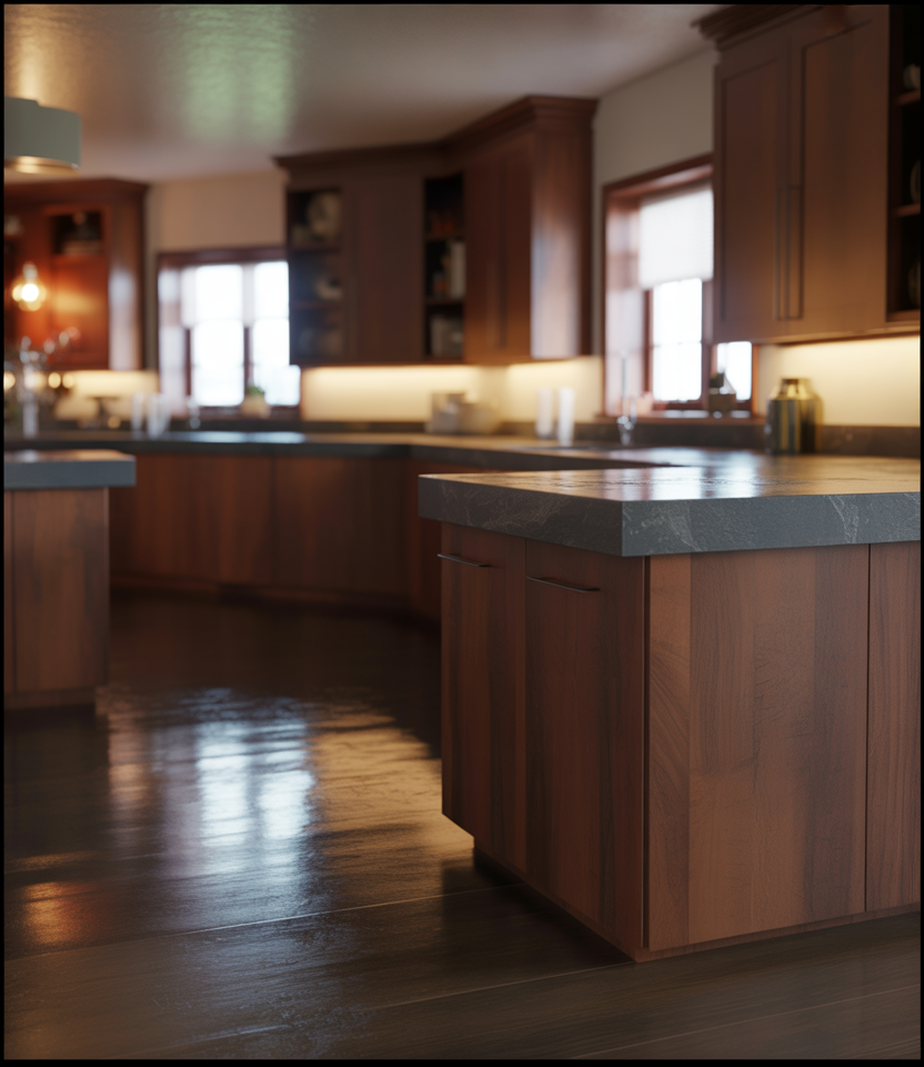 Dark brown cabinetry is finding new life in 2026, especially in open layouts with a dark brown floor and layered lighting. When paired thoughtfully with lighter walls, the cabinets feel rich rather than heavy. This approach works well with stone surfaces like dark brown granite counters for a cohesive look.