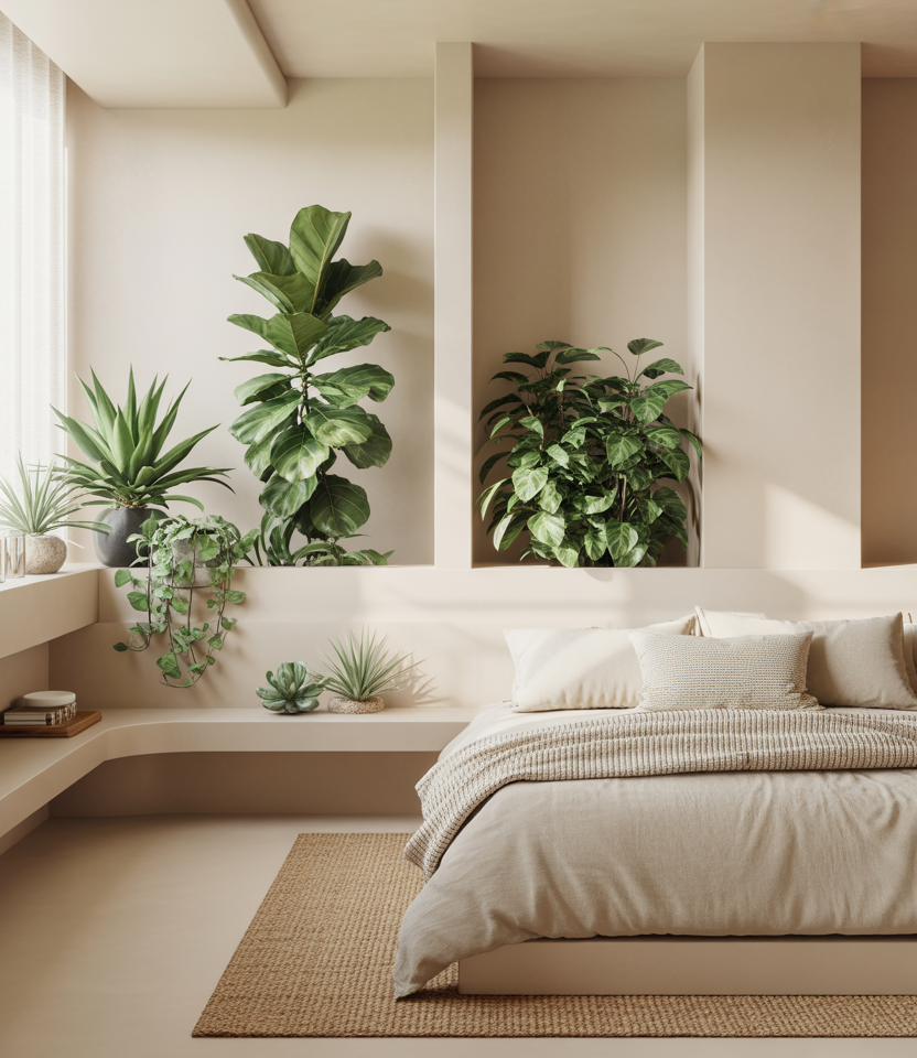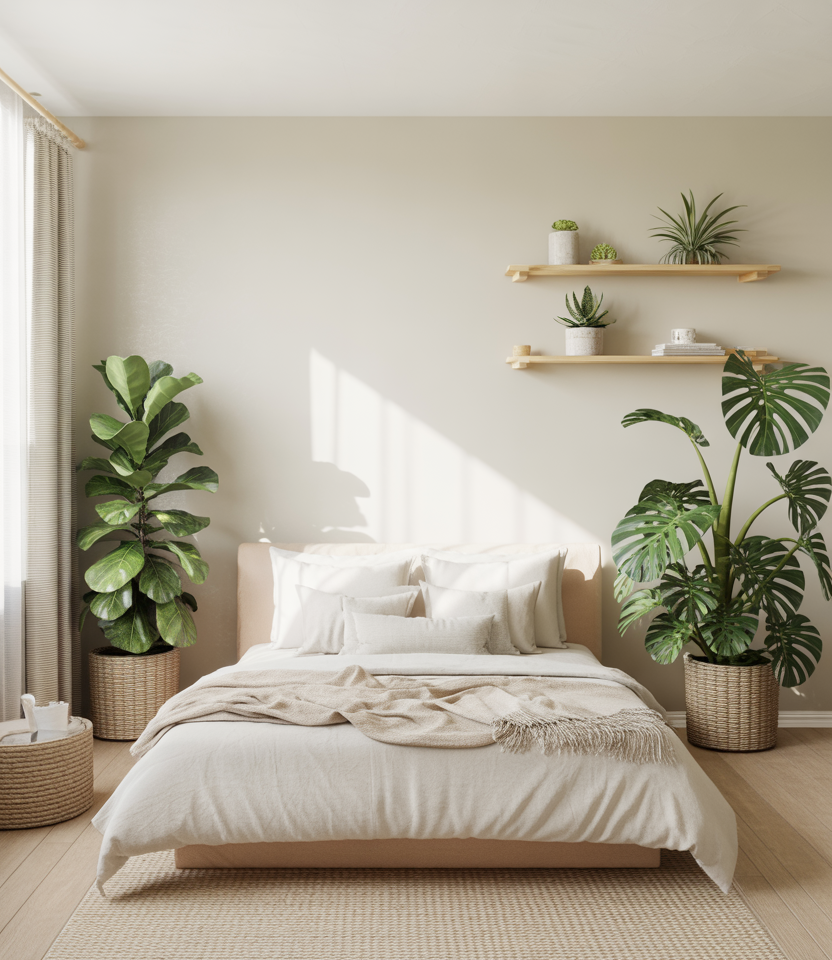 A botanical minimal bedroom balances greenery with clean lines for a stylish yet uncluttered look. Designers note that the mix of plants and restrained décor adds warmth without overwhelming the senses. When I introduced a single oversized fern into my room, it shifted the energy instantly. This 2026 idea works in city apartments or suburban homes seeking a natural lift.