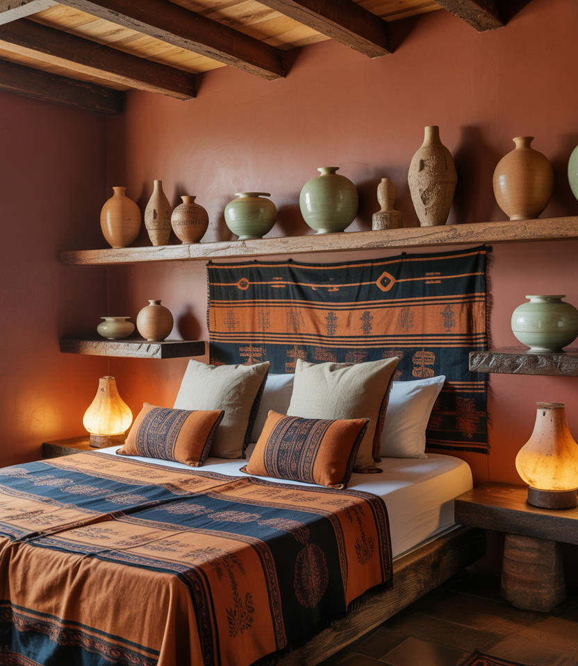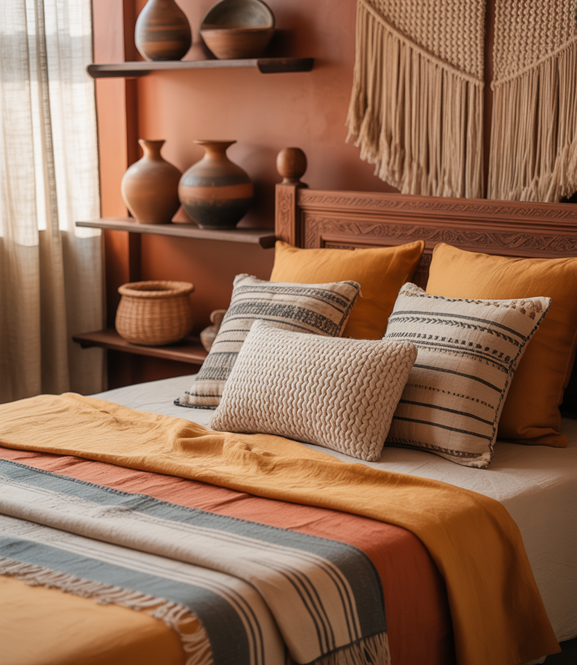 An artisan traditional bedroom celebrates handmade rugs, woven baskets, and pottery-inspired décor. The 2026 movement toward slower, intentional living makes this style feel especially wonderful and grounding. I once purchased a handwoven throw from a local fair and was amazed by the depth of narrative it brought. This idea works beautifully in cozy or tiny rooms, too.