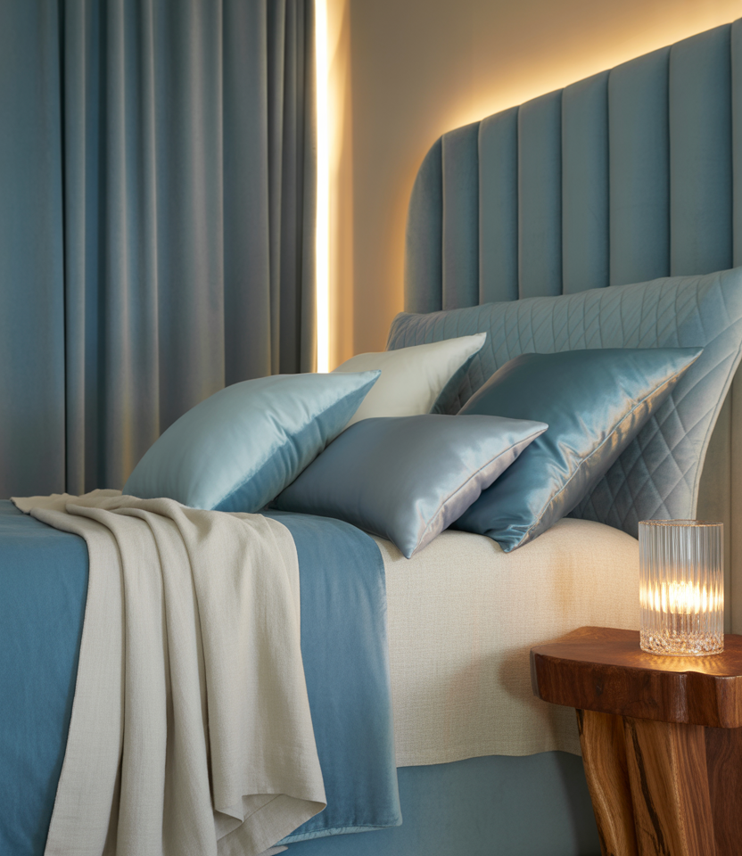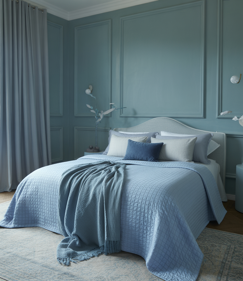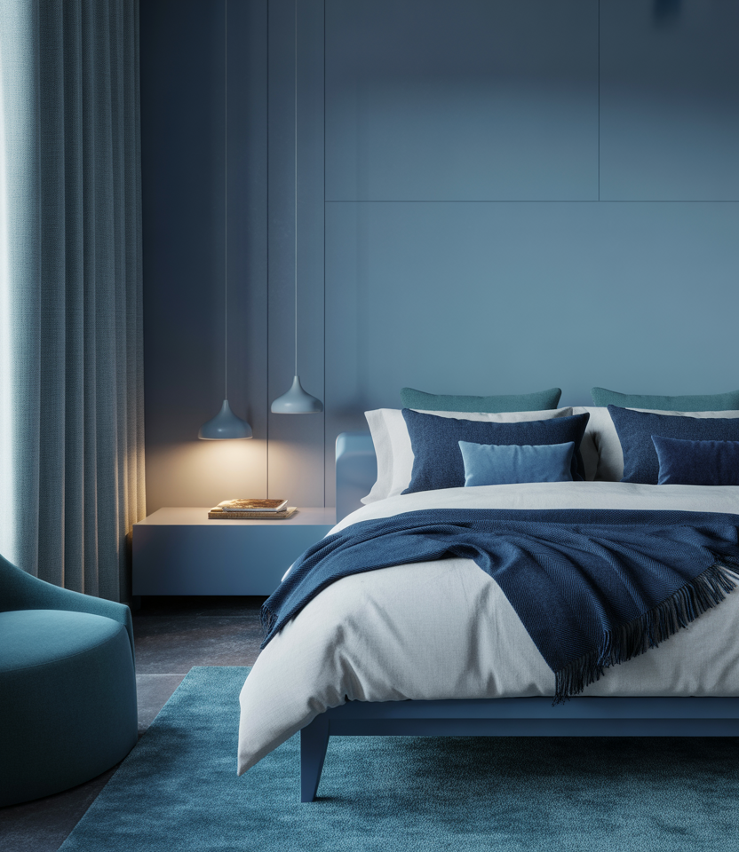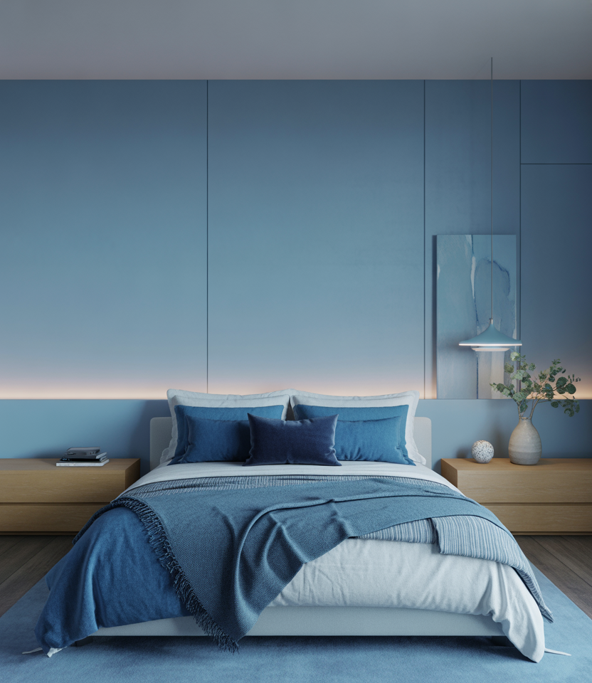 Soft or bold, blue is becoming a hero color for contemporary 2026 bedrooms. Designers like Shea McGee note that blue creates instant calm while remaining highly adaptable. I once repainted a rental bedroom navy and immediately felt cocooned each night. With the right lighting, blue feels luxurious, grounded, and effortlessly stylish.