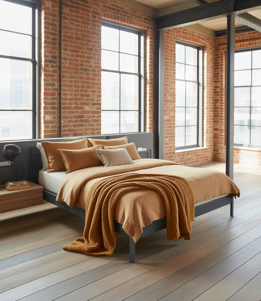 For 2026, an industrial chic bedroom incorporates exposed beams, aged metals, and tactile fabrics to soften the edge. I once toured an Atlanta loft where a linen headboard transformed the whole vibe without losing authenticity. This idea works best for those wanting a gritty-meets-comfort look—still modern luxury, but more approachable.