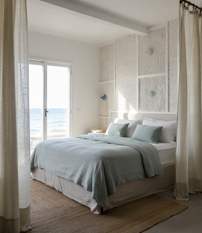 Ocean-inspired décor brings calm to primary suites and guest rooms through soft blue tones, driftwood elements, and breezy fabrics. Think sandy-neutral bedding, sea-glass accents, and linen curtains that remind you of beach houses on Cape Cod. My aunt styled her condo this way, and even in winter it feels like a summer morning spent by the shore—light, refreshing, and endlessly soothing.