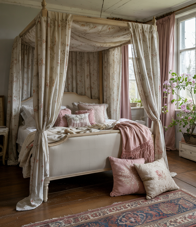Soft pink, sheer drapes, warm lamps, and layered linens build a romantic yet mature space. This style suits primary bedrooms and thoughtful guest suites. When I redecorated using rose bedding and velvet cushions, my partner—skeptical at first—now loved how relaxed it felt. Romance doesn’t need roses; it needs softness and intention.
