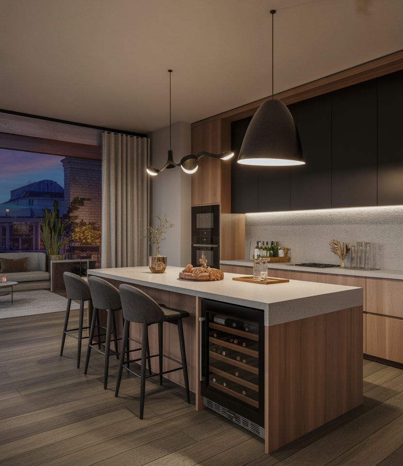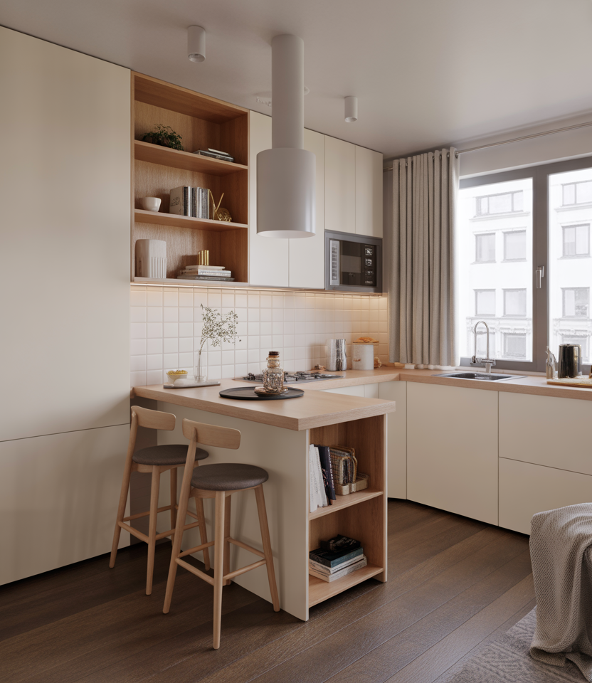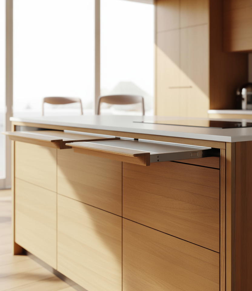 A stealth island with concealed mixers, toaster lifts, and a tuck-away microwave keeps surfaces open and clutter-free. Perfect for large family kitchens or small-space condos where every inch matters. Use white oak or white cabinetry for an airy feel and pair with slim bar stools for casual seating. I once visited a designer’s home where a lift-out stand mixer popped up like magic—baking felt like a TV show moment without messy counters.