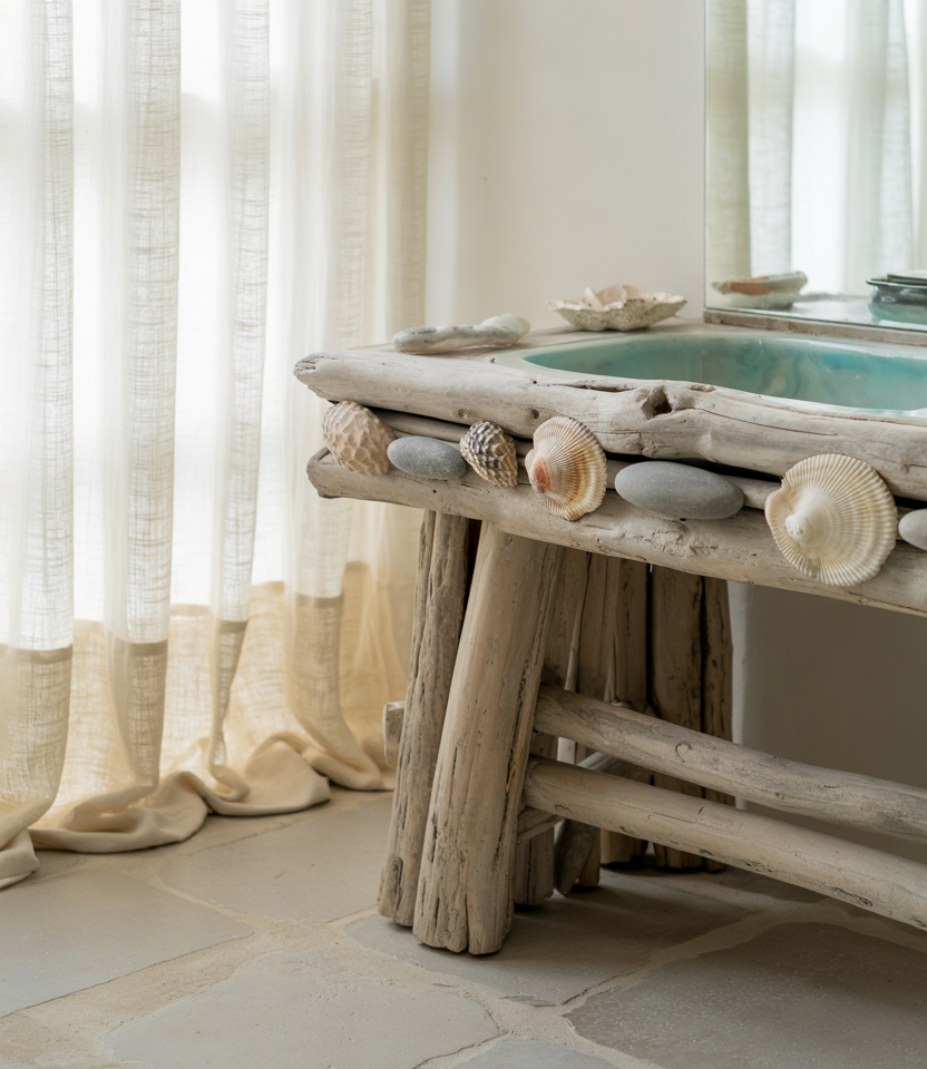 A driftwood vanity blends coastal serenity with rustic authenticity. Natural, weathered textures create a soft, beach-inspired escape right in the bedroom. It’s ideal for designers who love organic detail and understated makeup storage that feels connected to nature.