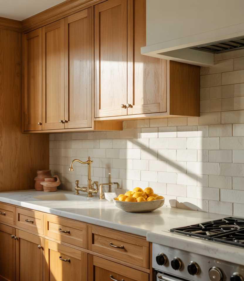 For lovers of calm Scandinavian design, white oak feels right at home—especially when paired with rift-sawn patterns, understated stains, and minimal brass hardware. Add a whisper of texture through subtle backsplash-backsplash ideas for a balanced, serene composition.