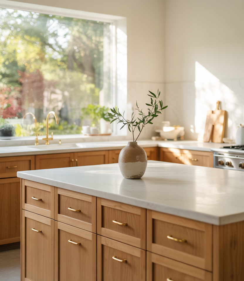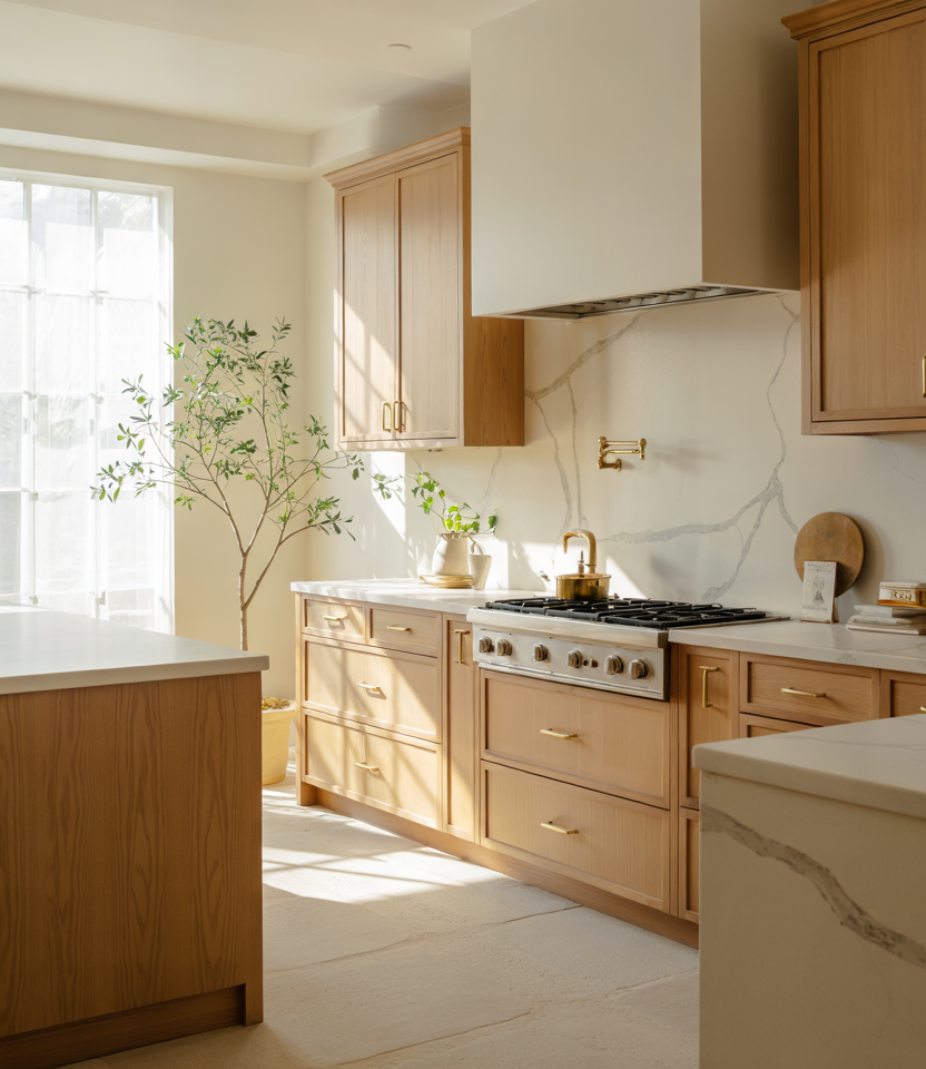 White oak opens the door to beautiful stone pairings, especially when softened with Taj Mahal-Mahal tones or subtle backsplash-backsplash ideas. Layering in gentle light colors and slim-profile details keeps the overall look clean and uplifting-even in high-traffic American kitchens.