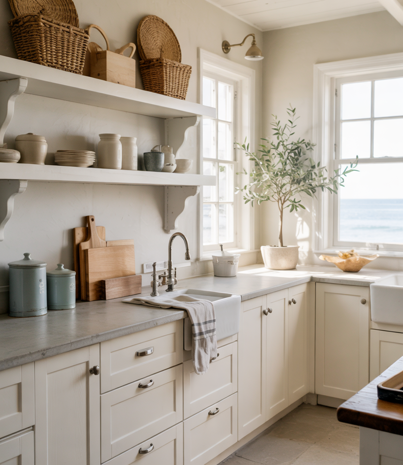 White oak works beautifully in breezy kitchens where a soft, airy mood is the goal. Pairing it with gentle light tones, coastal-inspired color schemes, and simple hardware ideas helps the cabinetry feel effortless and calm—perfect for coastal or lakefront homes seeking understated warmth.