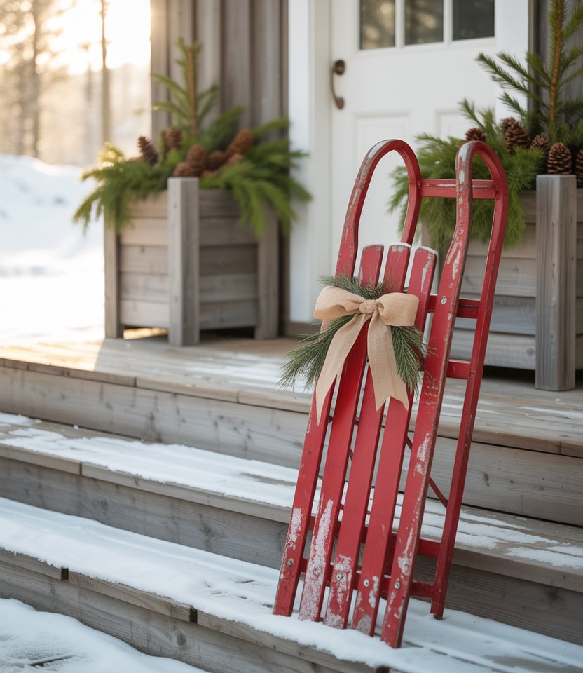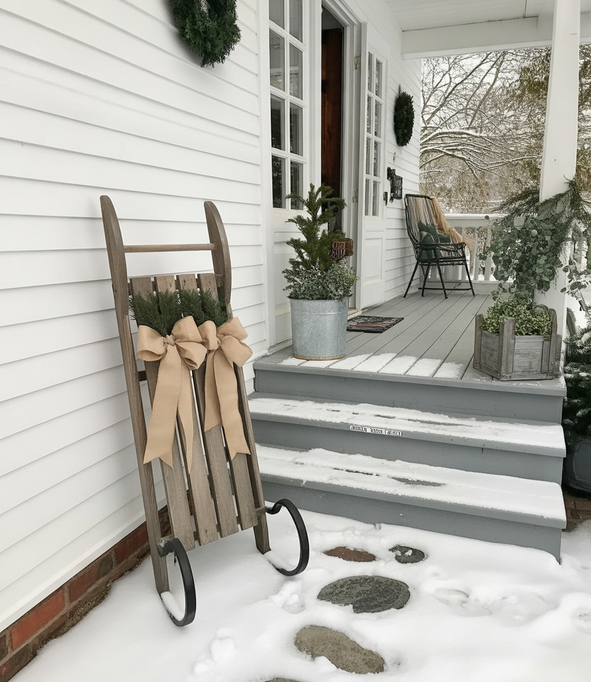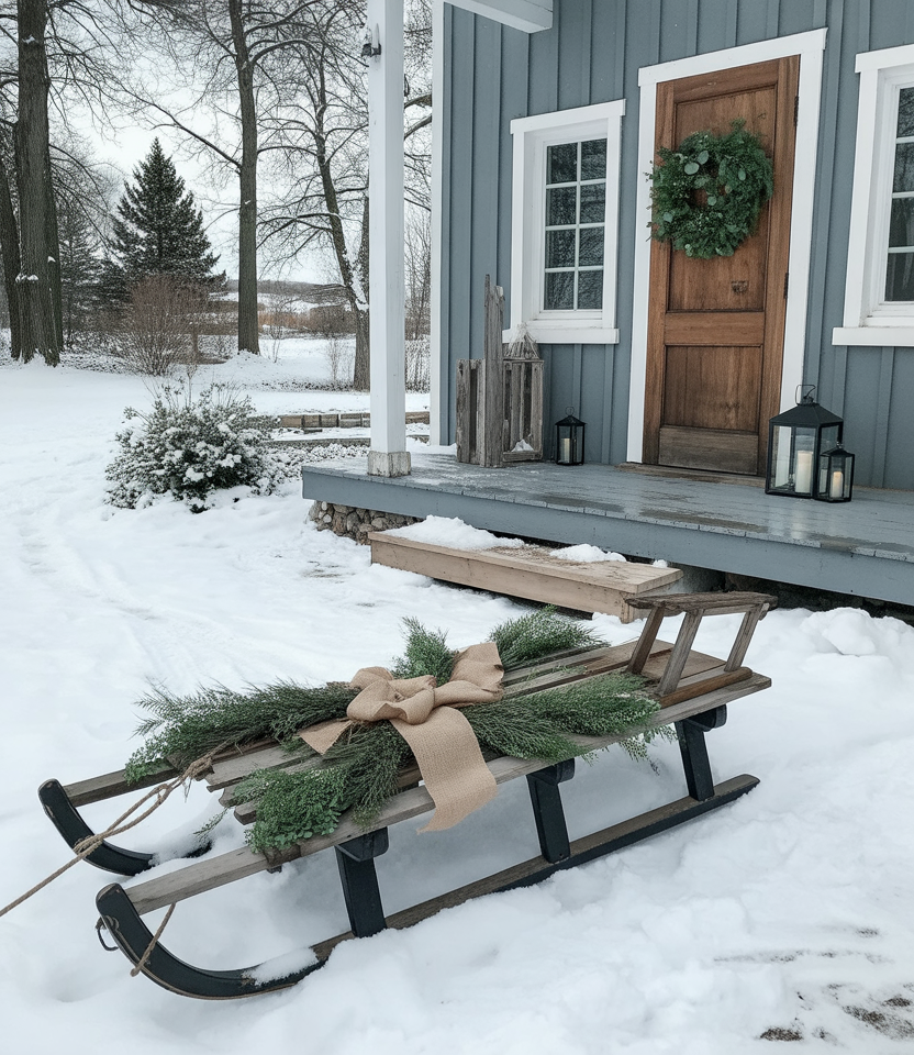 Swapping bright holiday bows for neutral ones in burlap or gray is a simple diy idea after Christmas. This works beautifully in ideas farmhouse settings and keeps porches stylish through late January. I once tied neutral bows on my sled, and it felt perfectly understated.
