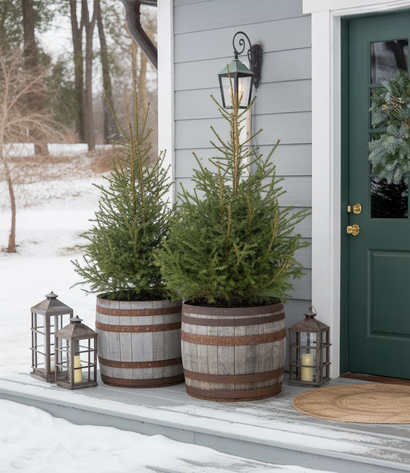 Once the tree was gone, porch décor always seemed to feel a little empty. So after Christmas, Christmas pots with evergreens really are a great option. They stand green in the gray January, bridging the holiday sparkle with the awakening of spring. These outdoor ideas after christmas dovetail in with rustic containers like galvanized tubs or wooden barrels. I often keep mine until February, and the neighbors enjoy seeing that patch of green against the snow.